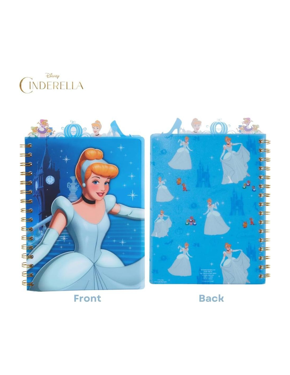 - CUBIERTA DE VINILO CON 4 SEPARADORES - La cubierta de vinilo protectora es fácil de limpiar. Los separadores presentan el famoso zapato de cristal de Cenicienta, el carruaje de calabaza, los ratones y la princesa misma, sobresaliendo por la parte superior para facilitar el paso de páginas. Cada separador de sección tiene una hermosa ilustración a color que se asemeja a escenas de la película.