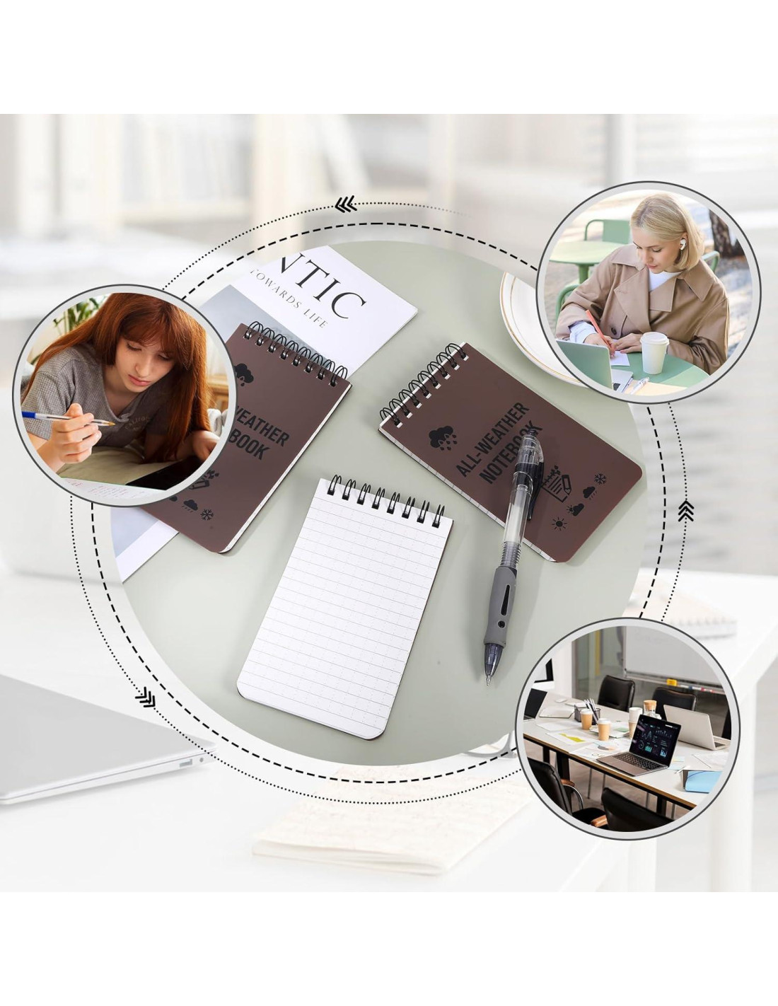 - Ideal para Todo Clima Diseñados como cuadernos impermeables, son perfectos para uso en todas las condiciones climáticas. Ya sea que esté lloviendo, embarrado, o cualquier otra condición desafiante, estos cuadernos no se desharán. Su papel impermeable asegura que tus notas permanezcan intactas. Ya seas un entusiasta del aire libre o simplemente necesites un bloc de notas de bolsillo confiable para el uso diario, este conjunto de 6 paquetes es una excelente elección