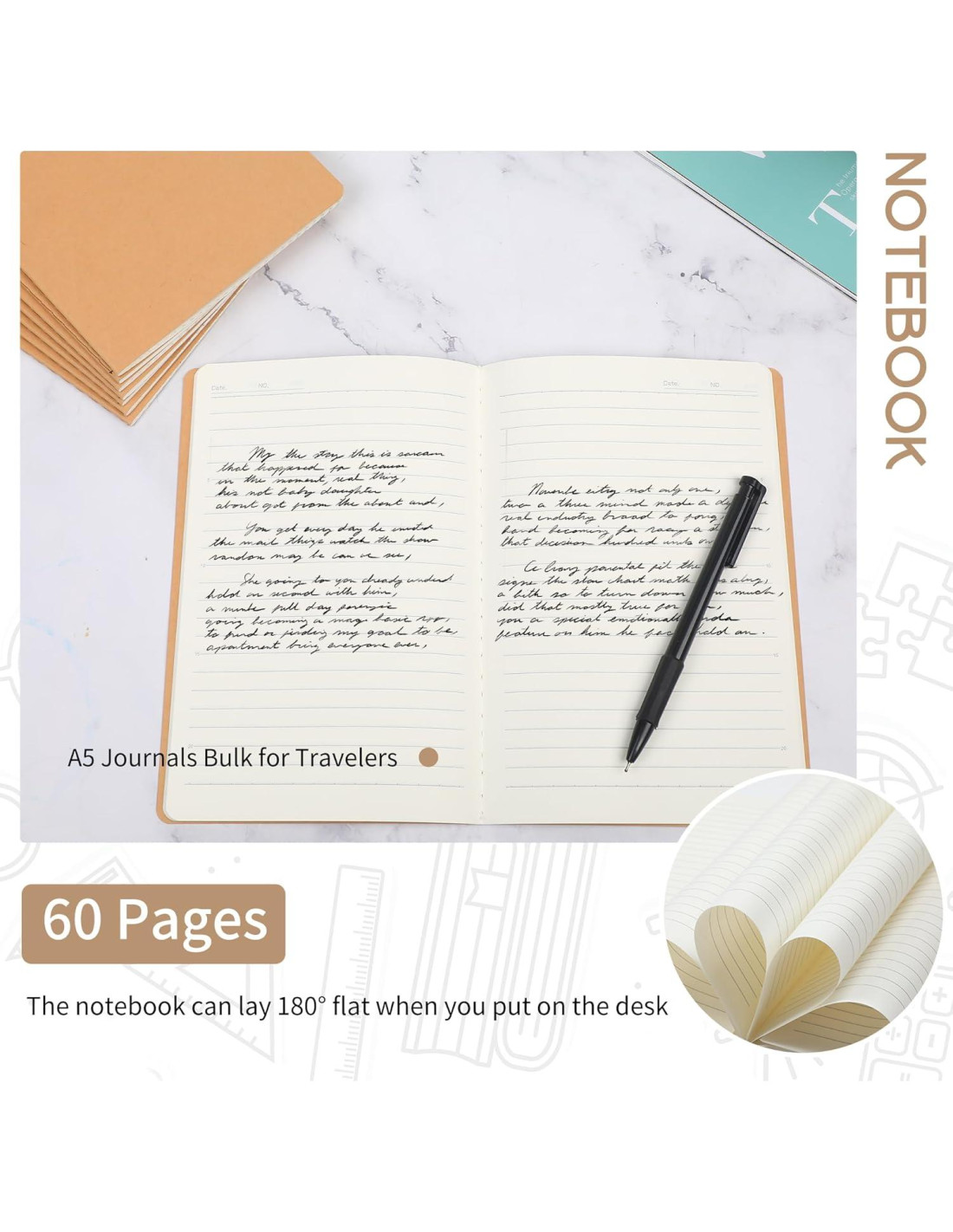 - Tamaño práctico: Nuestro cuaderno A5 rayado de kraft mide 8.3x5.5 pulgadas (21x14 cm), lo que no ocupará demasiado espacio. Puedes ponerlo en tu bolsa y llevarlo a otros lugares fácilmente