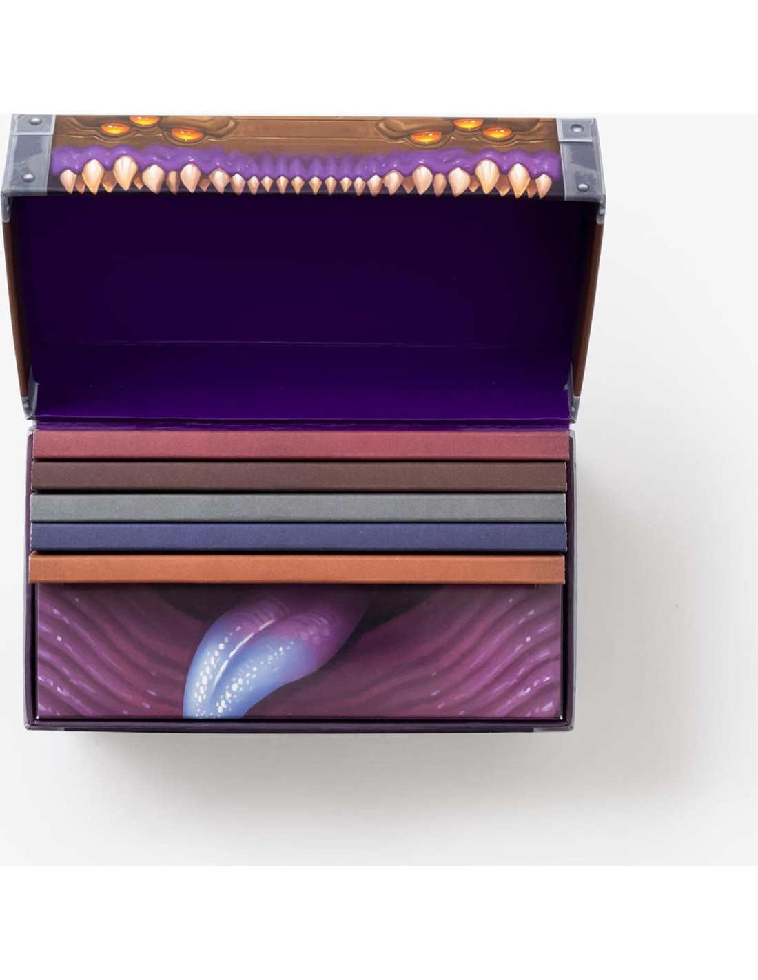 Este conjunto de cuadernos Cofre del Tesoro Mimic de Dungeons & Dragons, con licencia oficial, incluye cinco cuadernos en blanco de 4 x 6 pulgadas (10,16 x 15,24 cm) en una caja de clamshell de recuerdo diseñada para parecerse al monstruo de la quinta edición. Desata tu aventurero interior con este conjunto de cuadernos único diseñado para parecerse a un cofre del tesoro que ha sido tomado por un mimic, una de las criaturas más aterradoras en Dungeons & Dragons. La caja está ilustrada y diseñada por Eric Belisle, el artista que ilustró el mimic presentado en el Manual de Monstruos de D&D de quinta edición. La caja de clamshell incluye cinco cuadernos, cada uno con un monstruo único en la portada y un diseño de página de puntos, cuadrícula o líneas en el interior. La caja reutilizable sostendrá tus dados, lápices, bolígrafos y otros accesorios de escritorio. Perfecto para anotar estadísticas de personajes, esbozar mapas o tomar notas durante el juego, este conjunto de cuadernos es un imprescindible para los jugadores de D&D, así como para los amantes de RPG, ciencia ficción, fantasía y horror.