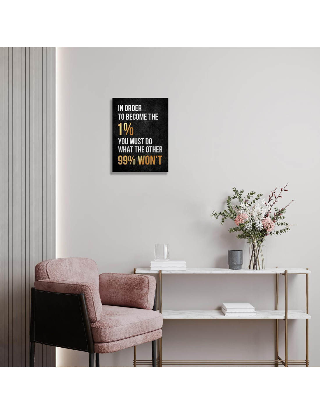 Arte de Pared Inspirador Lienzo Enmarcado 30.48 x 40.64 cm (PARA CONVERTIRSE EN EL 1%) - Citas Positivas Motivacionales para Decorar Oficina en Casa, Baño, Dormitorio, Cocina, Aula, Gimnasio