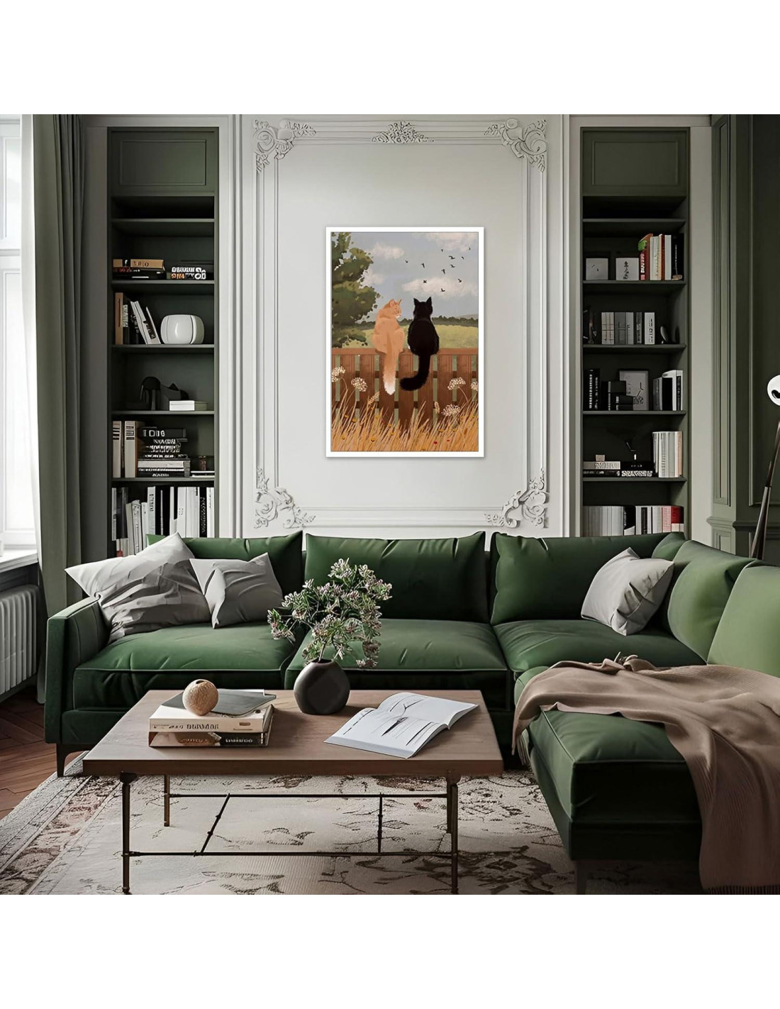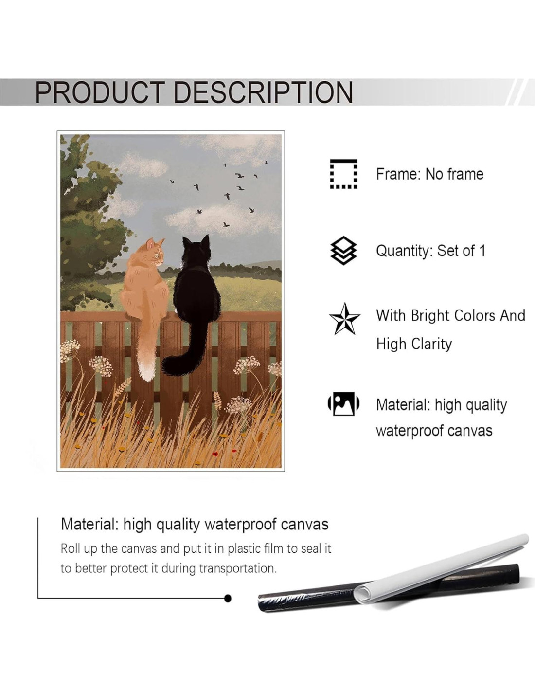 - Diseño Vintage Encantador: Este póster presenta una escena conmovedora de gatos vintage sentados en una cerca en el campo, creando una atmósfera encantadora y nostálgica que añade un toque de belleza rústica a cualquier habitación.