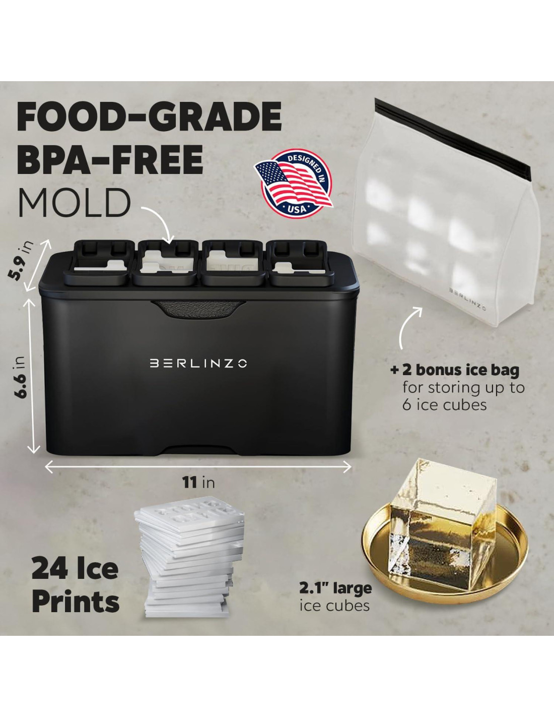 - CLARIDAD PERFECTA: Experimenta una claridad inigualable con el molde para cubos de hielo claro premium de Berlinzo. Diseñado para producir hielo claro en 48 horas, este molde para cubos de hielo utiliza un proceso de congelación natural para crear hielo cristalino y libre de impurezas. Mejora tu whisky, cócteles, bourbon y más con cubos de hielo prístinos que elevan la estética y calidad de tus bebidas. Verifica Antes de Comprar - Por favor revisa las dimensiones del molde de bola de hielo para asegurarte de que quepa en tu congelador.