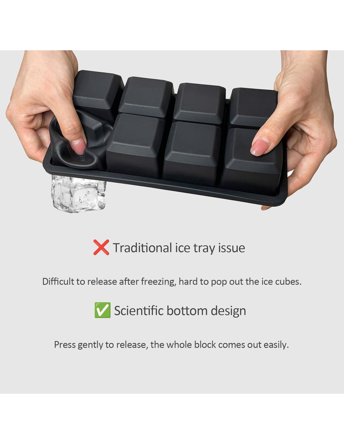 - TAMAÑO MEJORADO DE MOLDES DE HIELO PARA WHISKEY GRANDES: Diseñada con 8 moldes grandes, esta bandeja de hielo crea cubos de hielo de 2 pulgadas (5.08 cm), ideal para whiskey, bourbon y cócteles. Los cubos de hielo de fusión lenta mantienen tus bebidas frías por más tiempo, preservando el sabor original sin dilución. Una elección perfecta para entusiastas de los cócteles.