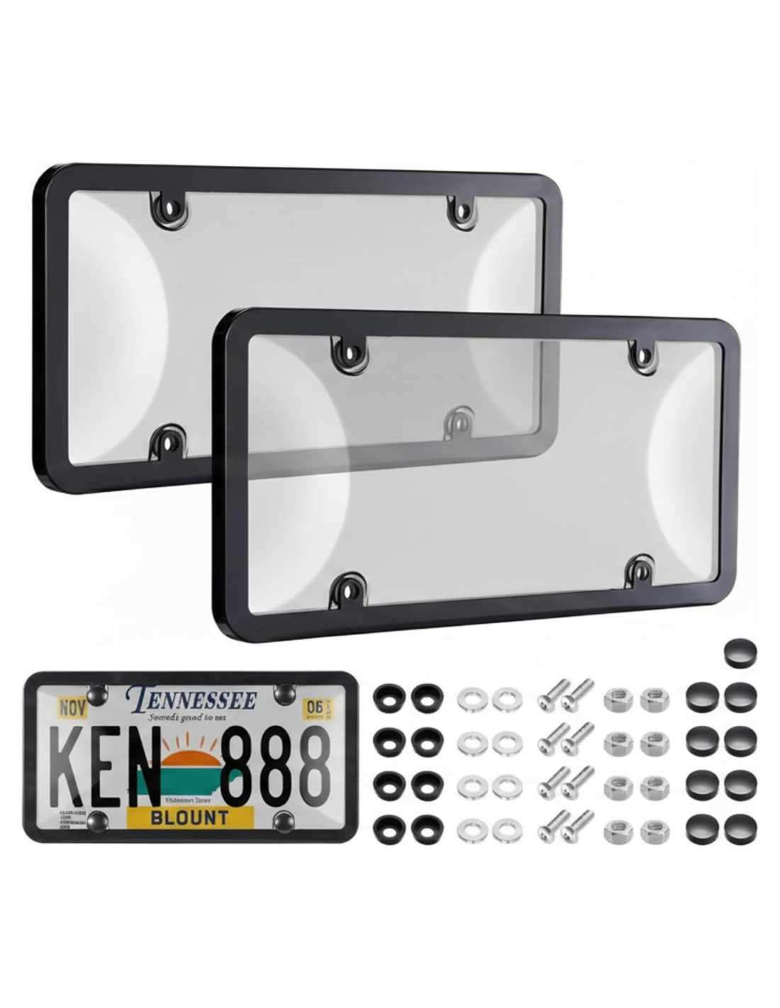 - Ajuste Universal Legal en Carretera - Conduce con Confianza: La cubierta de placa de licencia transparente se ajusta a todas las placas estándar de EE. UU. y Canadá (31.5 cm x 16 cm). El diseño inteligente asegura que tu etiqueta de registro permanezca completamente visible, por lo que es 100% legal en la calle y no te detendrán.