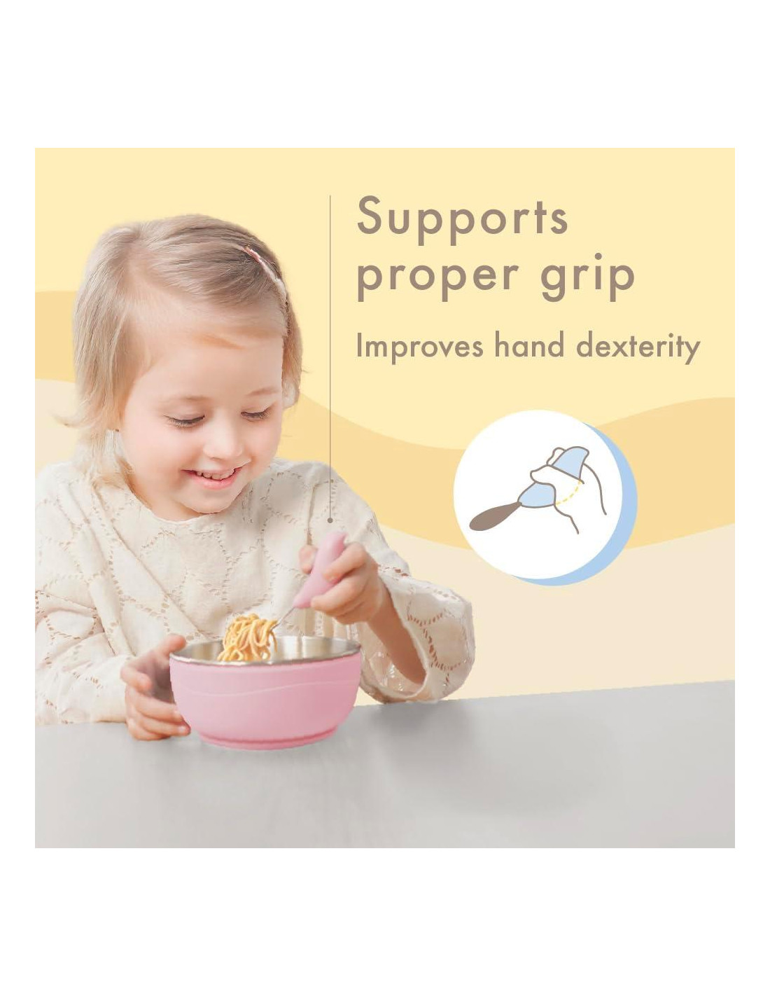 - Fomenta el Desarrollo Adecuado de las Manos La forma ergonómica está diseñada para ayudar a las manos pequeñas a adaptarse rápidamente, guiando naturalmente las técnicas de agarre adecuadas. Apoya a los niños a medida que progresan de la alimentación autónoma para principiantes a la alimentación independiente, fortaleciendo las habilidades motoras finas en el camino.