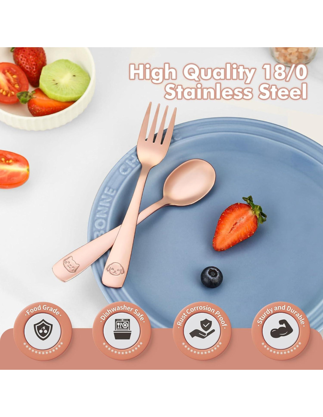 - MATERIAL SUPERIOR: Fabricados con acero inoxidable 18/0 premium al 100%, estos utensilios aseguran la seguridad de su hijo con materiales no tóxicos y resistentes a la corrosión. Estos cubiertos aptos para lavavajillas facilitan la limpieza, permitiéndole pasar más tiempo con sus hijos