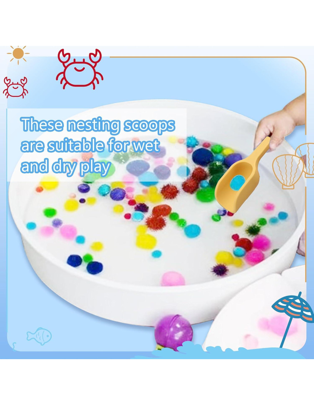 - [Para Niños que Aman Crear] !: No solo las cucharas se anidan entre sí, sino que también se pueden usar para una variedad de actividades que promueven la coordinación mano-ojo y la conciencia espacial. Los niños pueden apilarlas, clasificarlas o incluso usarlas para escenarios de juego de simulación como cocinar o construir, transferir agua, cuentas. los accesorios perfectos para bins sensoriales.
