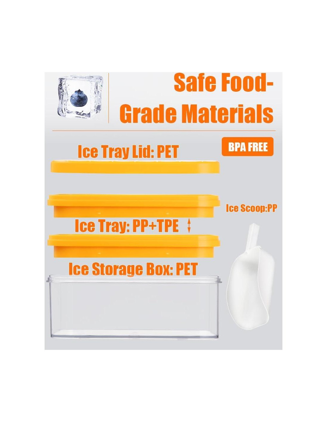 - [Materiales Seguros] La Bandeja de Hielo y los Moldes de Hielo están hechos de materiales seguros para alimentos, libres de BPA, asegurando hielo puro. El diseño apilable permite un almacenamiento ordenado y eficiente en el congelador sin pegarse.