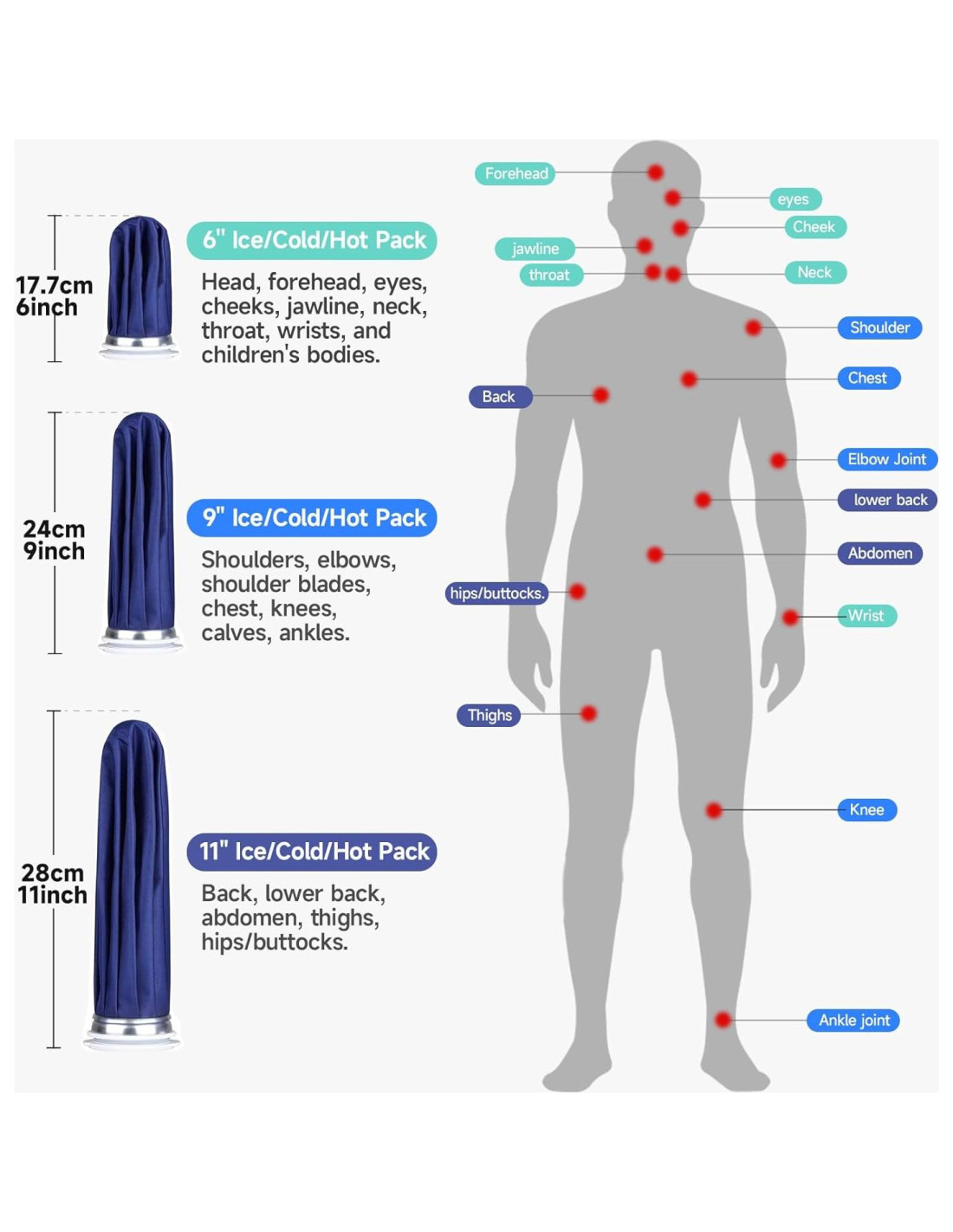 - Tres tamaños para satisfacer las necesidades de uso: [Grande (11"), Mediano (9"), Pequeño (6")] - Tres tamaños son adecuados para niños, jóvenes, hombres/mujeres adultos y ancianos, según el tamaño del área de dolor para elegir el paquete de hielo frío adecuado para sí mismos.