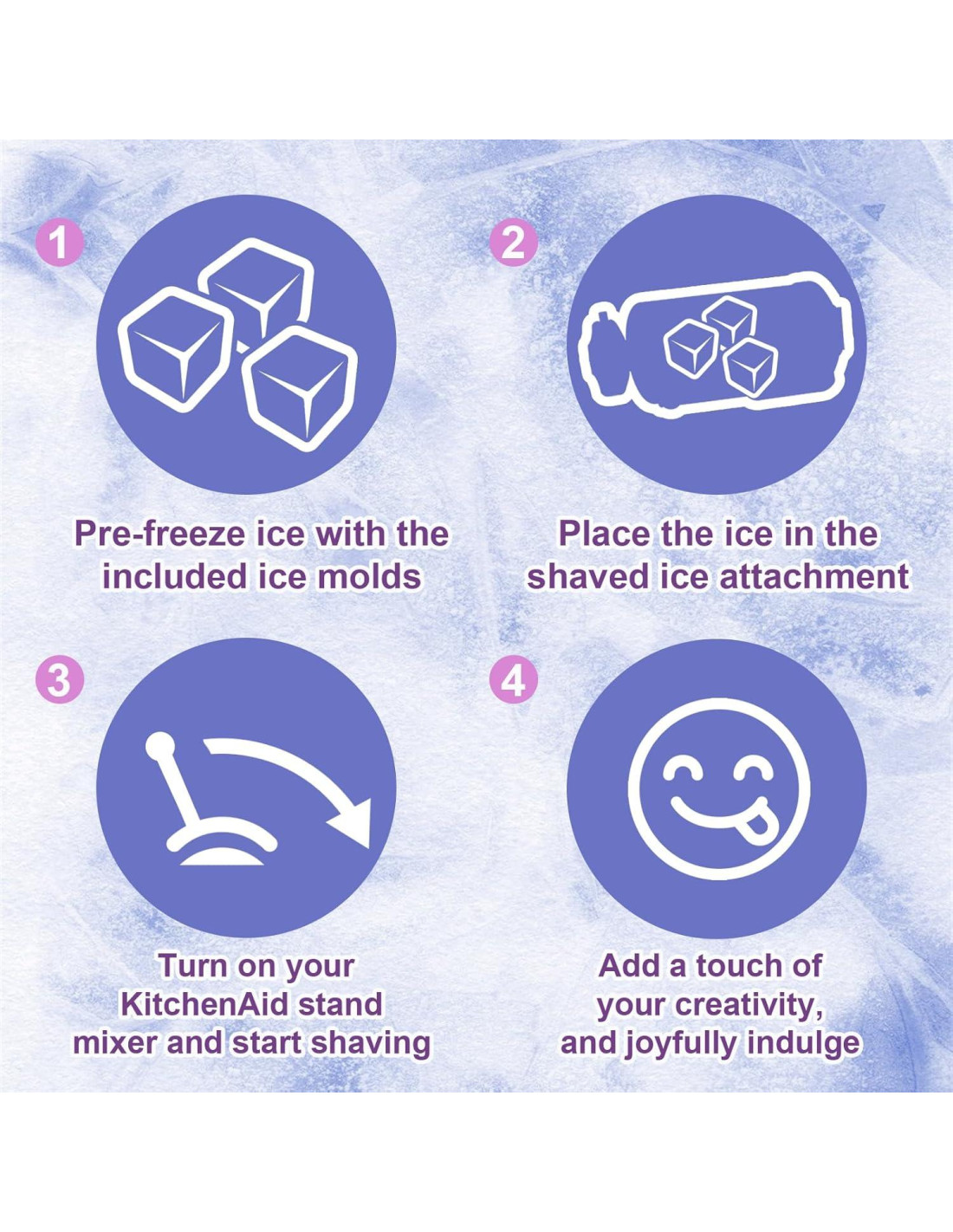 - Fácil de Usar y Limpiar: Fácil de instalar y usar. Lanza cubos de hielo precongelados en la máquina de hielo, enciende el mezclador Kitchen aid, obtendrás hielo raspado ligero, esponjoso y similar a la nieve en segundos. Simplemente enjuaga con agua después de cada uso
