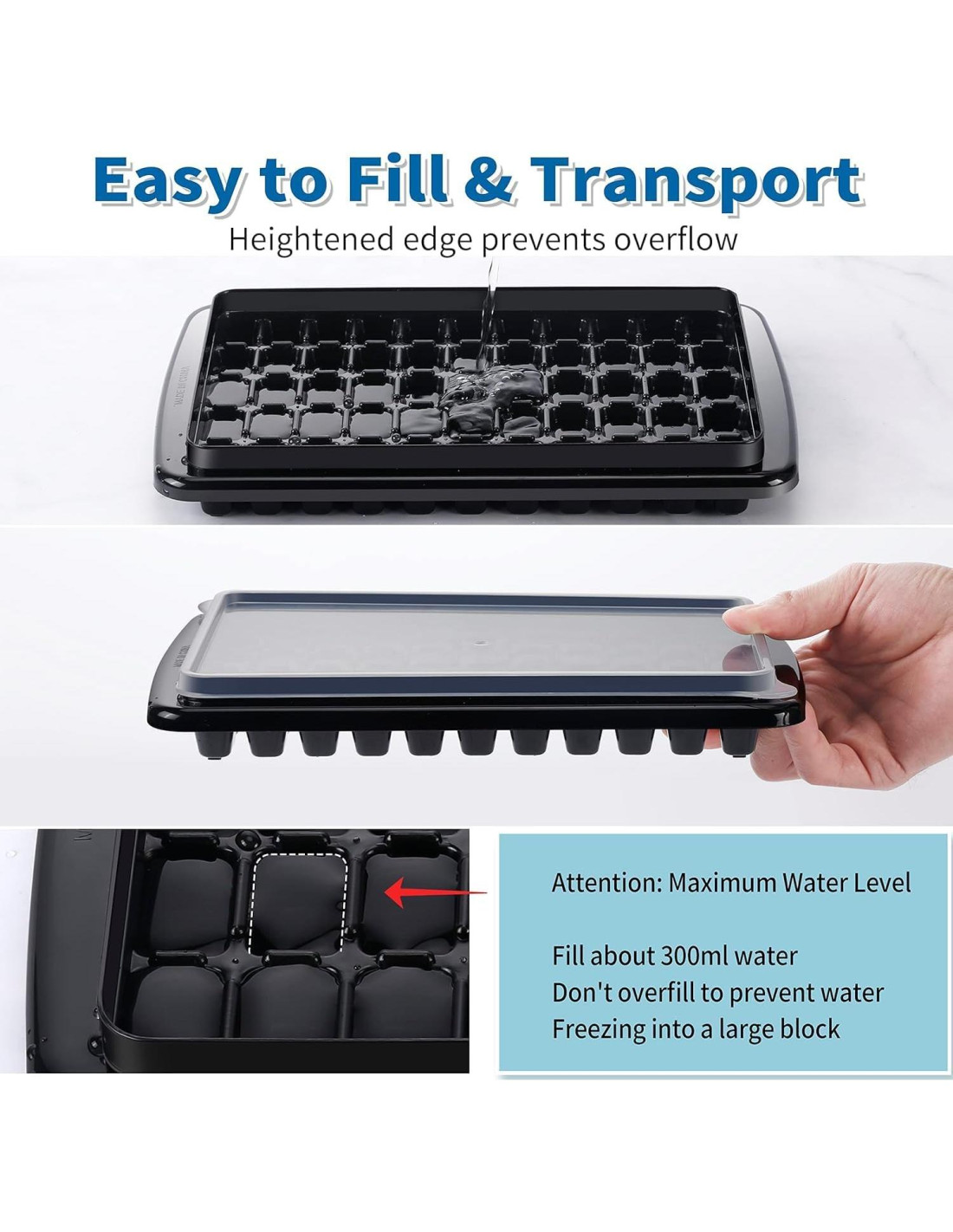 - Seguro y Conveniente para Tu Familia: Tanto la bandeja de hielo como la cuchara del contenedor están hechas de material de seguridad de grado alimenticio, libre de BPA. La tapa evita que los cubos de hielo absorban el olor del congelador, y usar la cuchara para tomar hielo es más conveniente e higiénico que usar la mano. Muy adecuado para habitaciones no privadas como oficinas y apartamentos de estudiantes.