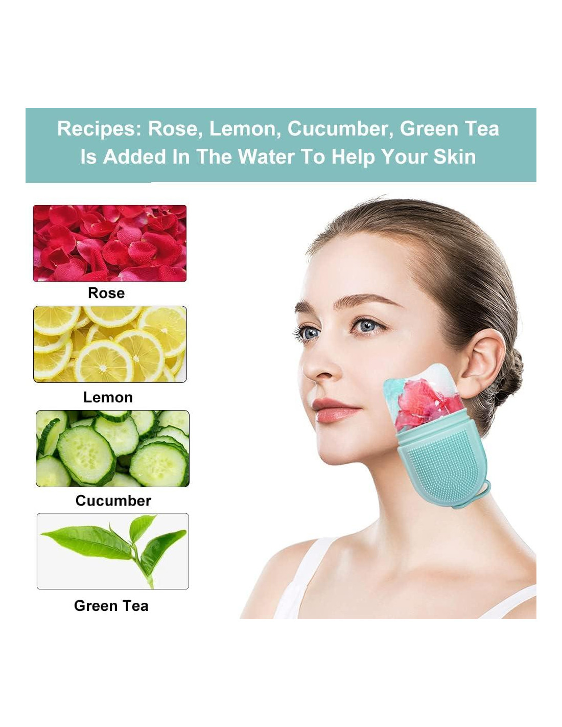 Recetas: Rosa, Limón, Pepino, Té Verde se añaden al agua para ayudar a tu piel. Disponible en Varios Colores: Rosa, Púrpura, Azul y Naranja. El Cepillo en el Cubo se puede usar para MASAJEAR LA PIEL cuando el hielo está en el molde. También es para limpiar brochas de maquillaje.