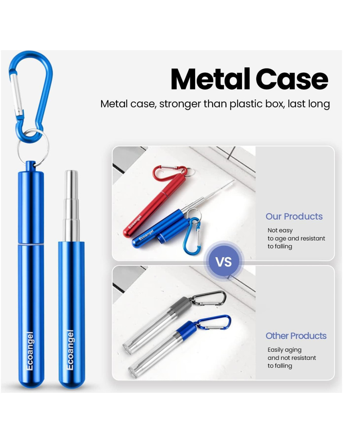 - Seguro y Ecológico: Estas pajitas de viaje están hechas de acero inoxidable 304 de grado alimenticio de alta calidad, todo en el paquete no contiene plástico ni pegamento, todos los materiales pueden ser reutilizados, lo que ayuda a reducir nuestra dependencia de las pajitas de plástico, reducir la contaminación ambiental y el desperdicio, para tener un impacto positivo.