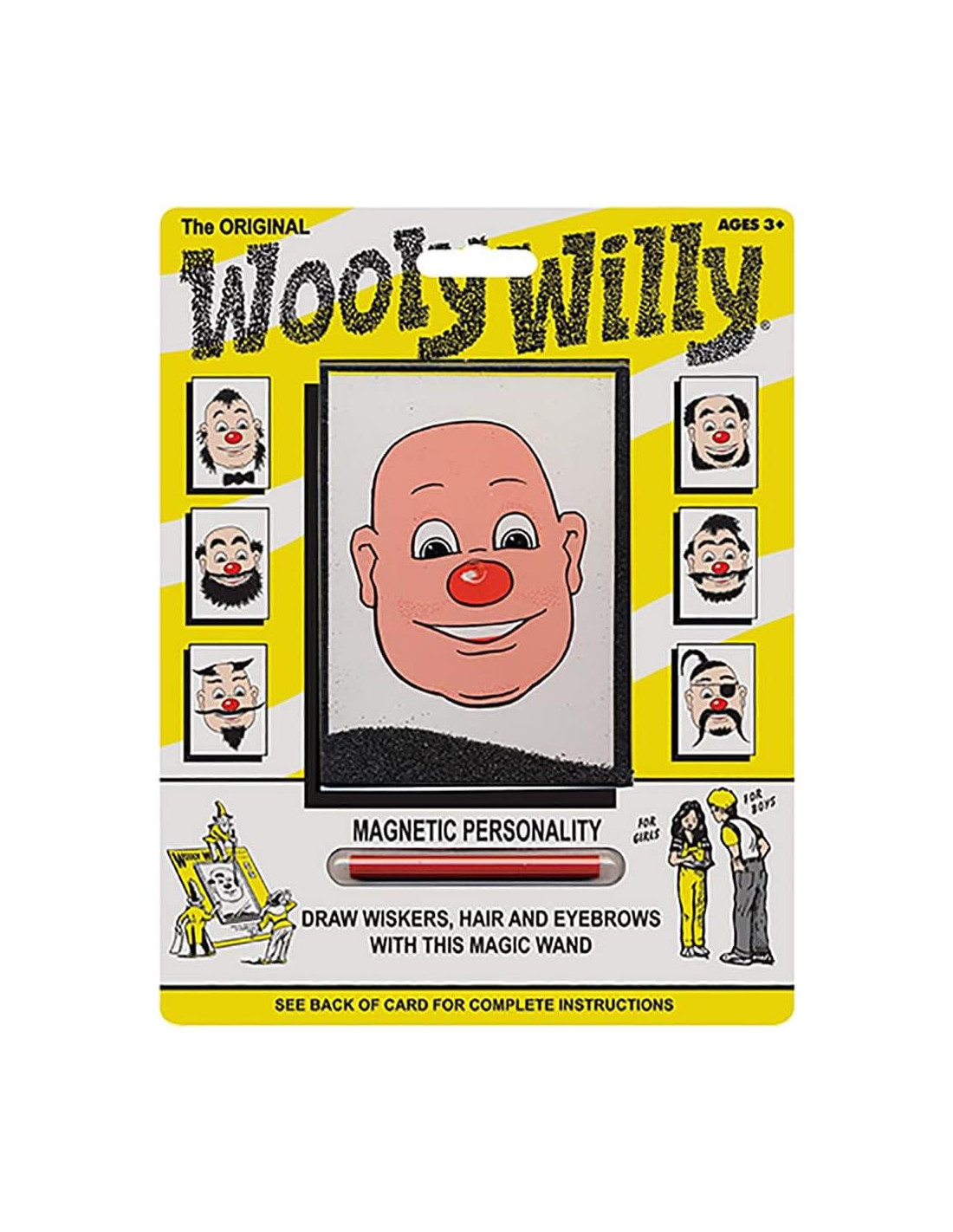 - Dale a Wooly Willy diferentes peinados, mostacho y más usando la varita magnética para mover el polvo de hierro en el marco de la tarjeta. Wooly Willy está clasificado como uno de los grandes conceptos de juguetes de todos los tiempos.