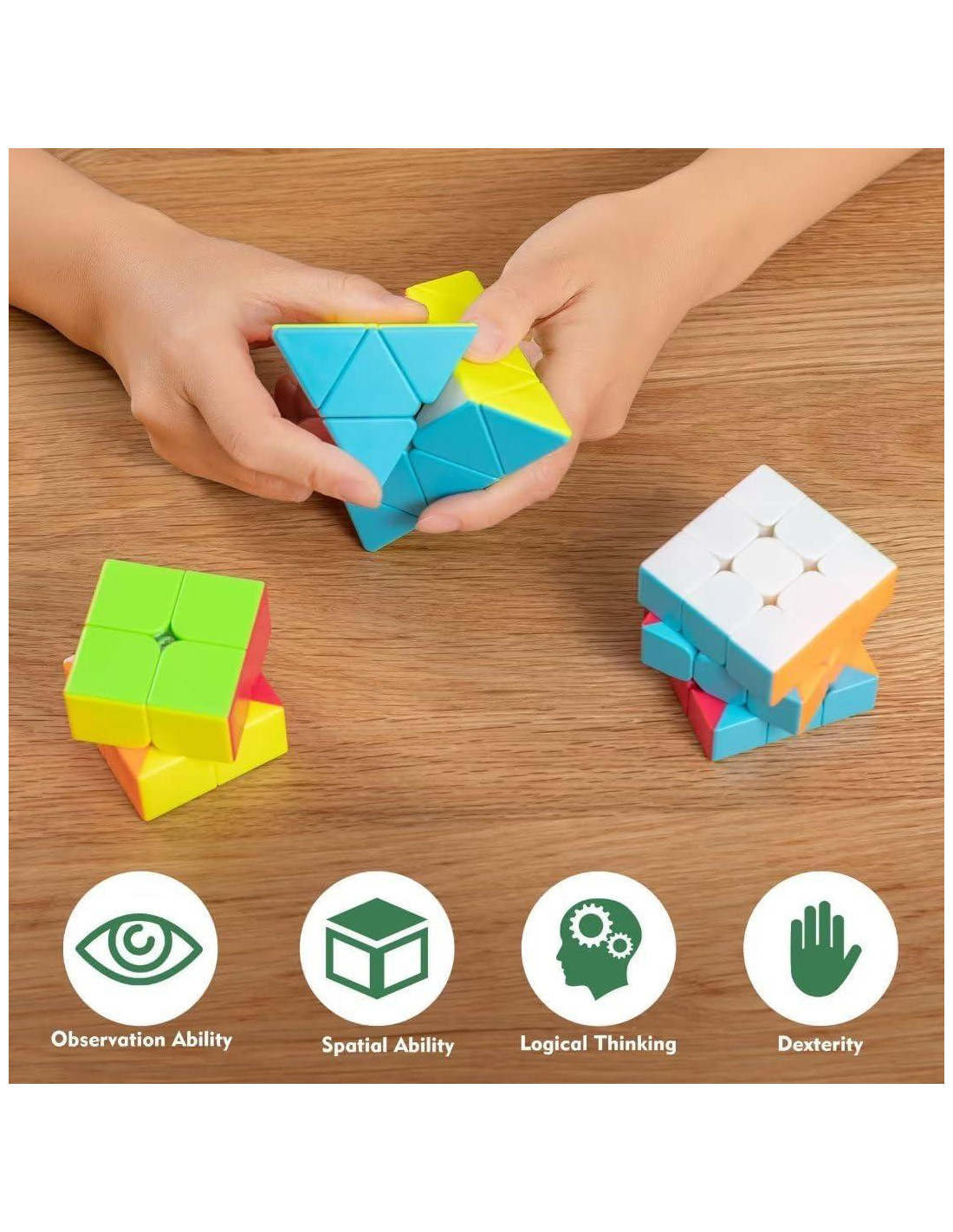 - DIVERSIÓN PARA TODAS LAS EDADES: Cubos rápidos vibrantes sin etiquetas (2x2, 3x3 y Pirámide) desafían a los jugadores a alinear colores en cada cara. Perfecto para solucionadores casuales y práctica competitiva - ¡domina nuevos algoritmos o mejora tus tiempos de resolución!