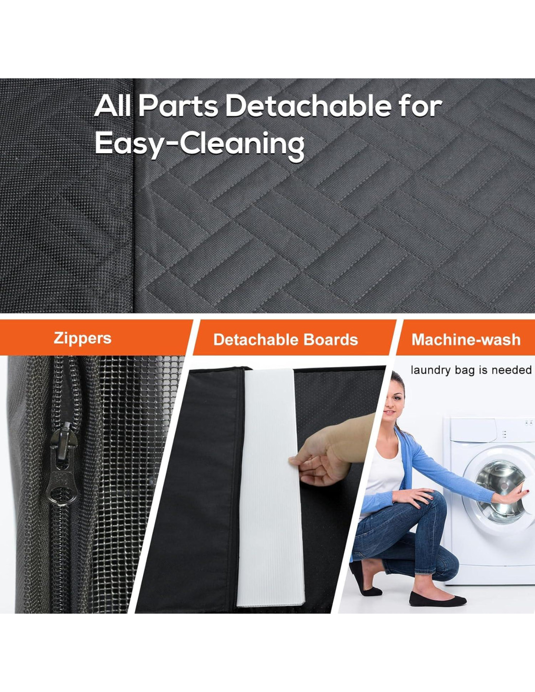 Extensor de Asiento Trasero para Perros - Esta funda de asiento para perros en el asiento trasero extiende el espacio del asiento trasero. Proporcionando un espacio de descanso más grande y cómodo para perros u otras mascotas. Estudio y Duradero - Esta funda de asiento de fondo duro para perros está hecha para ser impermeable, desmontable y fácil de limpiar después de ensuciarse; El panel de panal en la parte delantera, trasera y en la parte inferior de esta funda de asiento para perros la hace resistente y con alta capacidad de carga; La cama para perros para el asiento trasero está hecha de tela oxford 600D con material antideslizante en la parte inferior, lo que hace que el extensor de asiento trasero para perros no se mueva fácilmente. Adecuado para Casi Todos los Perros - Este asiento de perro grande está hecho para perros de casi todos los tamaños. Asiento de perro de tamaño mediano para perros pequeños a medianos (por ejemplo, pit bull), funda de asiento para perros de tamaño grande para perros medianos a grandes (por ejemplo, Labrador). El tamaño mediano de esta hamaca para perros es 72.9*55.9*54.6 cm. El tamaño grande de esta funda de asiento trasero para perros es 55.9*55.9*54.6 cm. Esta cama para perros es adecuada para coches, SUVs y camiones. Diseño de Función Adicional - Esta funda de asiento para perros en el asiento trasero tiene una bolsa de almacenamiento, que se puede usar para guardar bocadillos, correa, collares de perro y otros pequeños accesorios. Estos asientos de perro medianos tienen varios cierres suaves para una fácil instalación y limpieza. La tela del cojín trasero de este transportador de perros para el coche se puede plegar y almacenar en la capa interna inferior, y el asiento para perros para el coche también se puede transformar en un cojín para usar en casa o para acampar. Los Pasajeros Pueden Sentarse Junto a los Perros - Si usas la funda completa para perros, el protector del asiento trasero para perros no permitirá que se sienten personas. Con este extensor de asiento trasero para perros, los pasajeros también pueden sentarse en la parte trasera.
