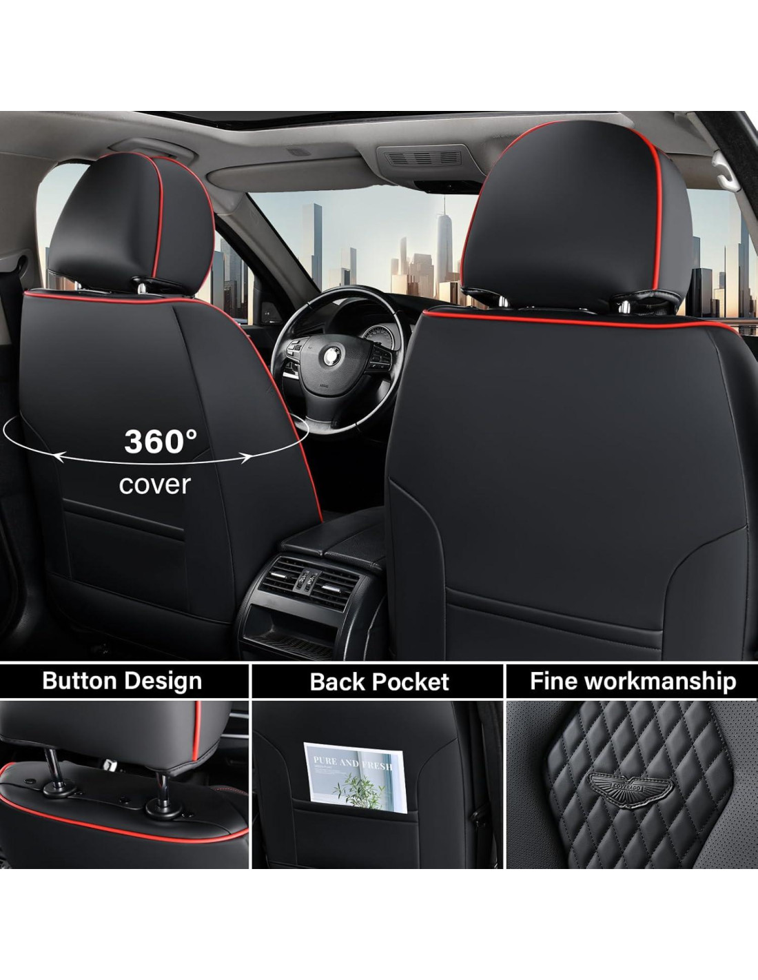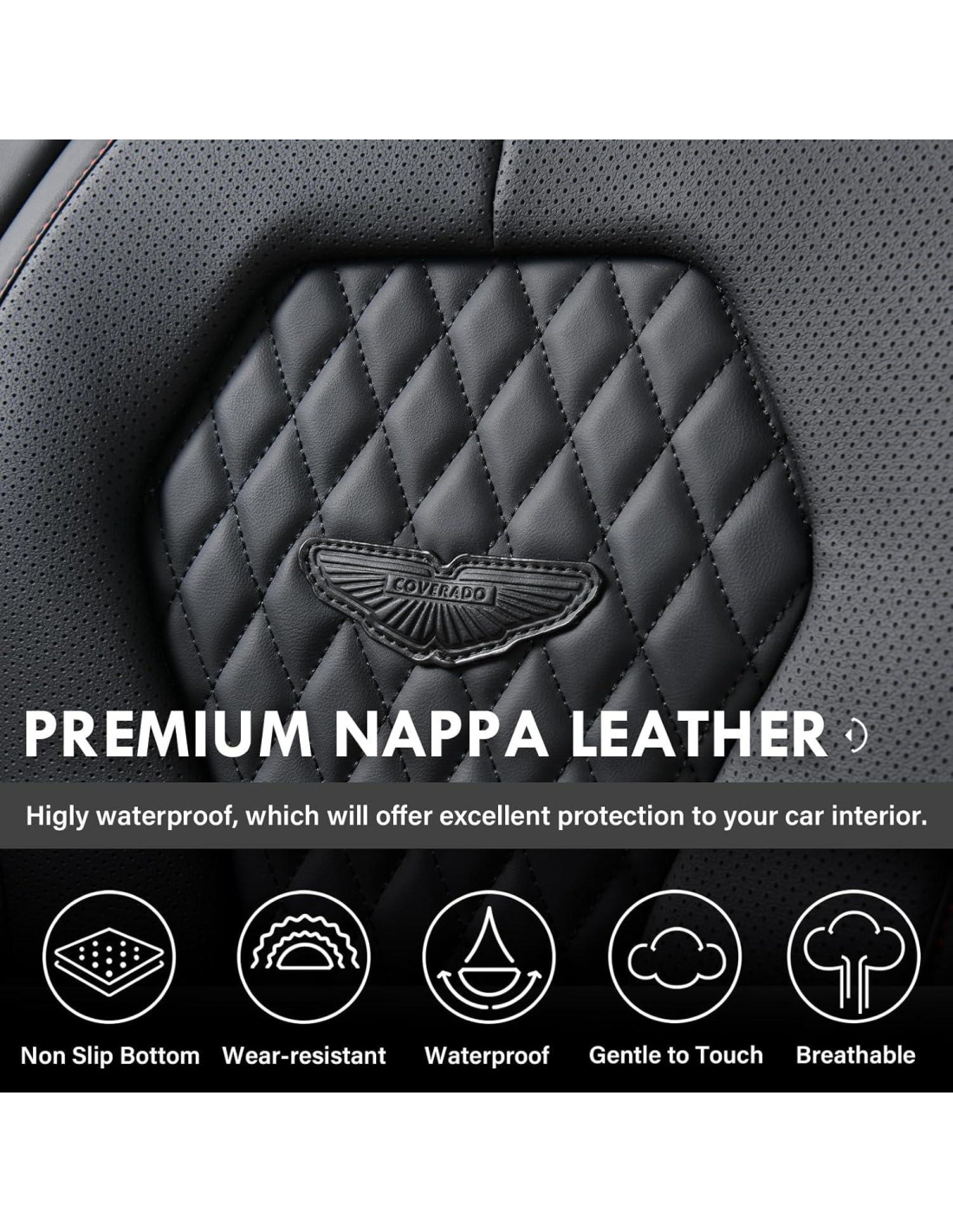 - DISEÑO DE LUJO - Estas encantadoras cubiertas de asientos de coche cuentan con un aspecto moderno y aerodinámico, cuero premium y una construcción clásica que soporta el uso diario. Su lujo coordina con la mayoría de los estilos de interiores de coches, lo que la convierte en la cubierta perfecta para cualquier coche