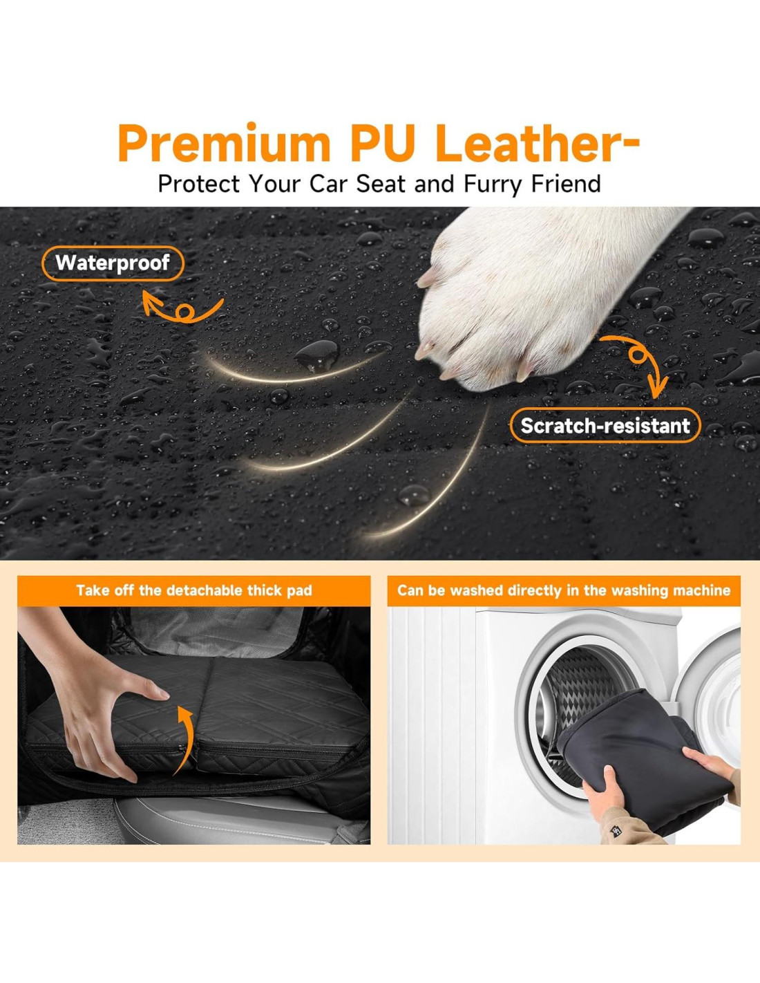 - Material Cómodo de Alta Calidad: Nuestro asiento de coche para perros está hecho de tela de PU de alta calidad, material duradero e impermeable que protege el asiento de tu coche de suciedad, caspa y fugas. La parte trasera está diseñada con antideslizante, no es fácil de mover y el perro dentro de la hamaca para perros no es fácil de deslizar. Equipado con acolchado de felpa removible, es cálido en invierno y fresco en verano, asegurando la máxima comodidad para tu mascota mientras viaja.