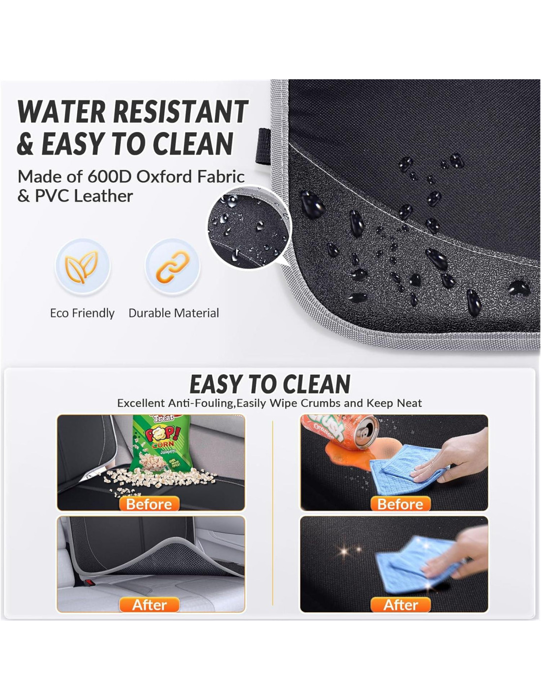 - [TELA IMPERMEABLE 600D QXFORD Y 2 BOLSILLOS DE ALMACENAMIENTO] Esta funda de asiento de coche está hecha de tela Oxford 600D de alta calidad y cuero PVC, que puede proteger los asientos de cuero de tu coche de manchas de agua, escombros y sudor. Puedes limpiar la suciedad causada por derrames de comida o saliva de mascotas con un paño húmedo, manteniendo tu coche ordenado y organizado, ahorrando tiempo y esfuerzo. Con 2 bolsillos de almacenamiento para guardar juguetes, bocadillos para bebés y toallitas, que aumentan el espacio de almacenamiento del coche y hacen que tu viaje familiar sea más agradable.