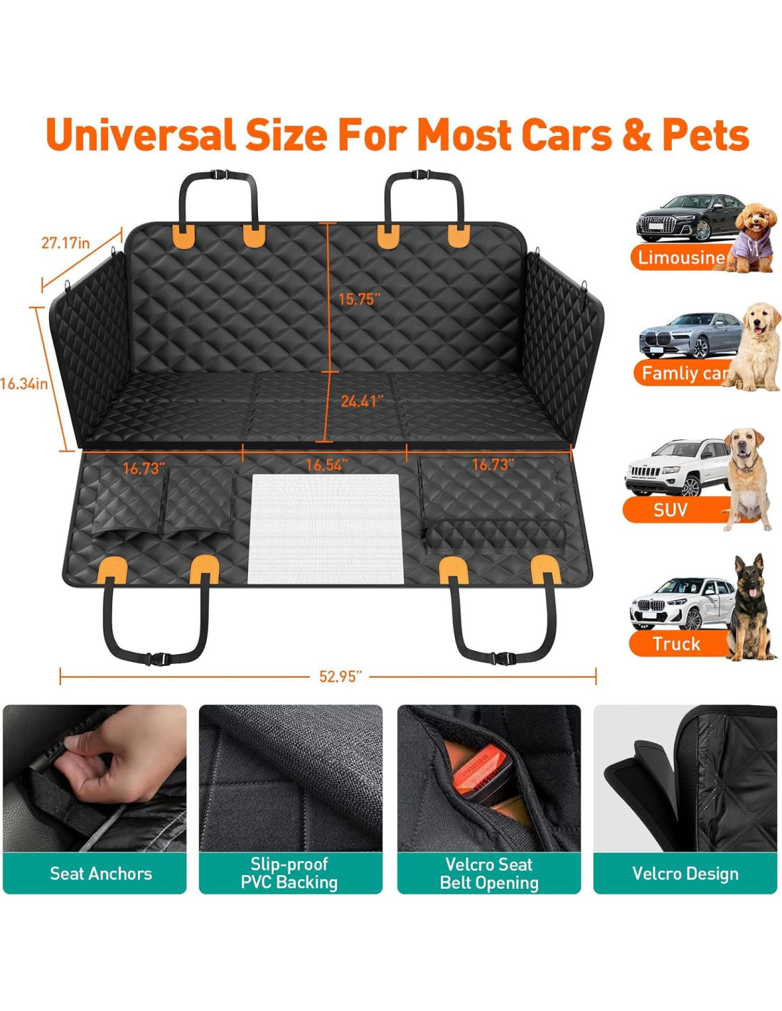 - [Extensión del 40% de espacio] La funda de asiento de coche para perros con fondo duro la convierte en una cama de coche y cubre completamente el área trasera. Este protector de asiento de coche para perros hace que el espacio de actividad del perro sea más grande, permitiendo que tu perro camine o estire sus extremidades fácilmente, aliviando la ansiedad del perro durante viajes largos en coche. Ideal para perros grandes, perros mayores o el asiento trasero de una familia con múltiples perros.