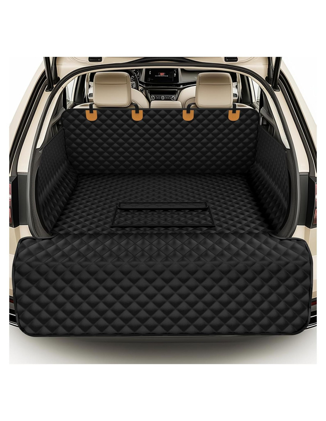 - Solapa para Parachoques Impermeable Mejorada & Cuero PU - Barrera a Prueba de Derrames - Capa resistente al agua bloquea orina, baba y lluvia con bordes elevados. - Diseño a Prueba de Rasguños para Perros - La tela de Cuero PU resiste garras, masticar y abrasiones. - Protector de Parachoques - Solapa reforzada protege los bordes del maletero cuando los perros saltan dentro/fuera.
