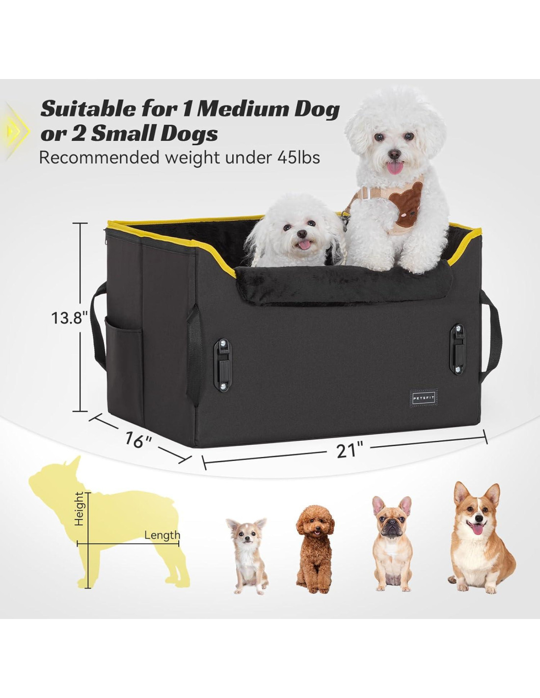 - [Asiento de Coche para Perros de Tamaño Mediano] Midiendo 53.34cm x 40.64cm x 35.05cm, este asiento de coche para perros acomoda cómodamente a un perro de tamaño mediano de hasta 20.41kg o 2 perros pequeños. El diseño universal se adapta a los asientos delanteros y traseros del coche, lo que lo hace ideal para desplazamientos diarios o aventuras de fin de semana con tus compañeros peludos.