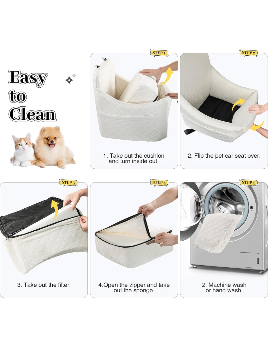 - Uso Multifuncional: El asiento de coche para perros pequeños no solo es adecuado para vehículos, sino que también se puede usar como cama para perros en casa, al aire libre o en una tienda, proporcionando a su perro un espacio de descanso cómodo en cualquier lugar. Tiene una funda desmontable y lavable, simplemente abra la cremallera y saque la esponja para limpiar la funda. Tenga en cuenta que la esponja interior no es lavable.