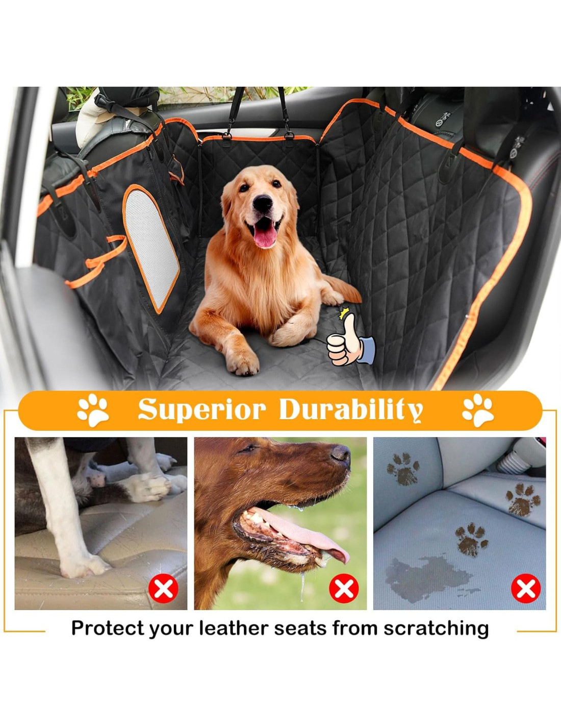- [100% IMPERMEABLE Y RESISTENTE AL DESGASTE] Esta funda de asiento para perro está hecha de telas de 4 capas, 100% impermeable para proteger tu asiento de barro, líquidos, pelo o cualquier desorden, duradera para evitar rasguños en tus asientos de cuero, y cómoda para largos viajes por carretera. No más barridos interminables.