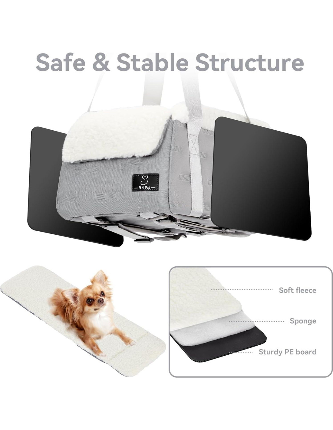 - Transportadora Cómoda para Todas las Temporadas: Bordes de felpa suave y un cojín reversible (lados frescos/cálidos) hacen de este el asiento de coche para perros más cómodo. La estructura reforzada con tablero de PE no colapsará, mientras que la almohada frontal ajustable permite que las mascotas se relajen cómodamente durante los viajes.