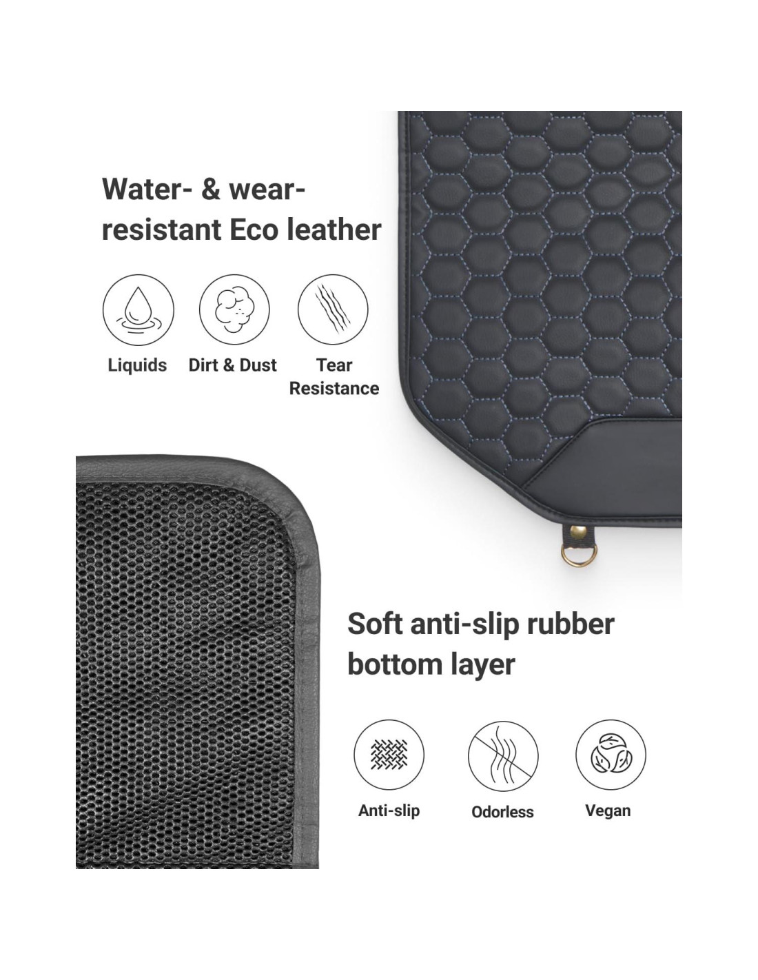 - Características especiales: Instalación fácil con correas seguras, construcción de eco-cuero duradero de 5 capas, protección de asiento trasero a prueba de patadas, se ajusta a la mayoría de los coches, SUVs, furgonetas, superficie impermeable y resistente a manchas