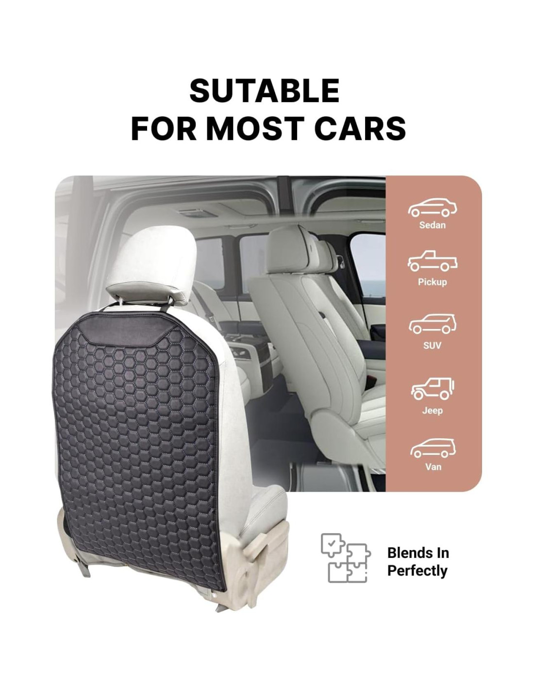 - AJUSTE UNIVERSAL: Nuestro tapete de patadas protector de asiento trasero para niños se ajusta a la mayoría de los coches con reposacabezas desmontables en los asientos, ya sea SUV o furgoneta.