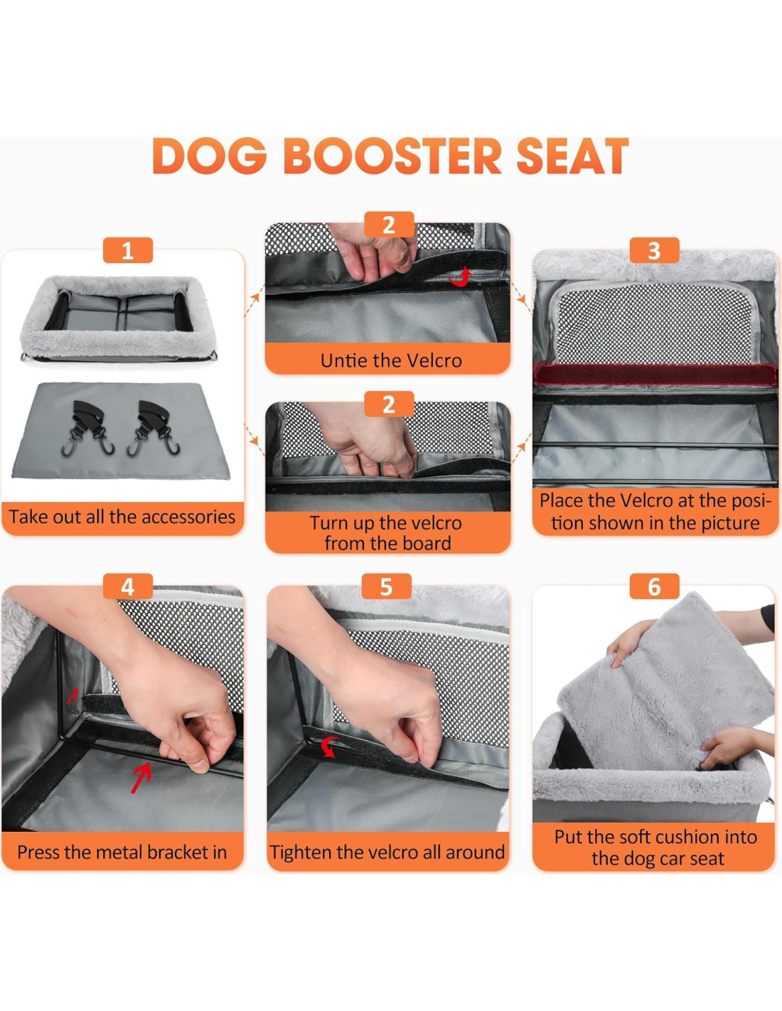- [Mantén a tu Mascota Segura]: El marco metálico interno colapsable proporciona un soporte resistente para tu mascota, mientras que los dos cinturones de seguridad ajustables aseguran que el asiento elevador permanezca en su lugar y evita que se deslice en el coche. Además, la correa de seguridad con clip mantiene a tu perro asegurado en los asientos del coche, proporcionando seguridad adicional y tranquilidad.