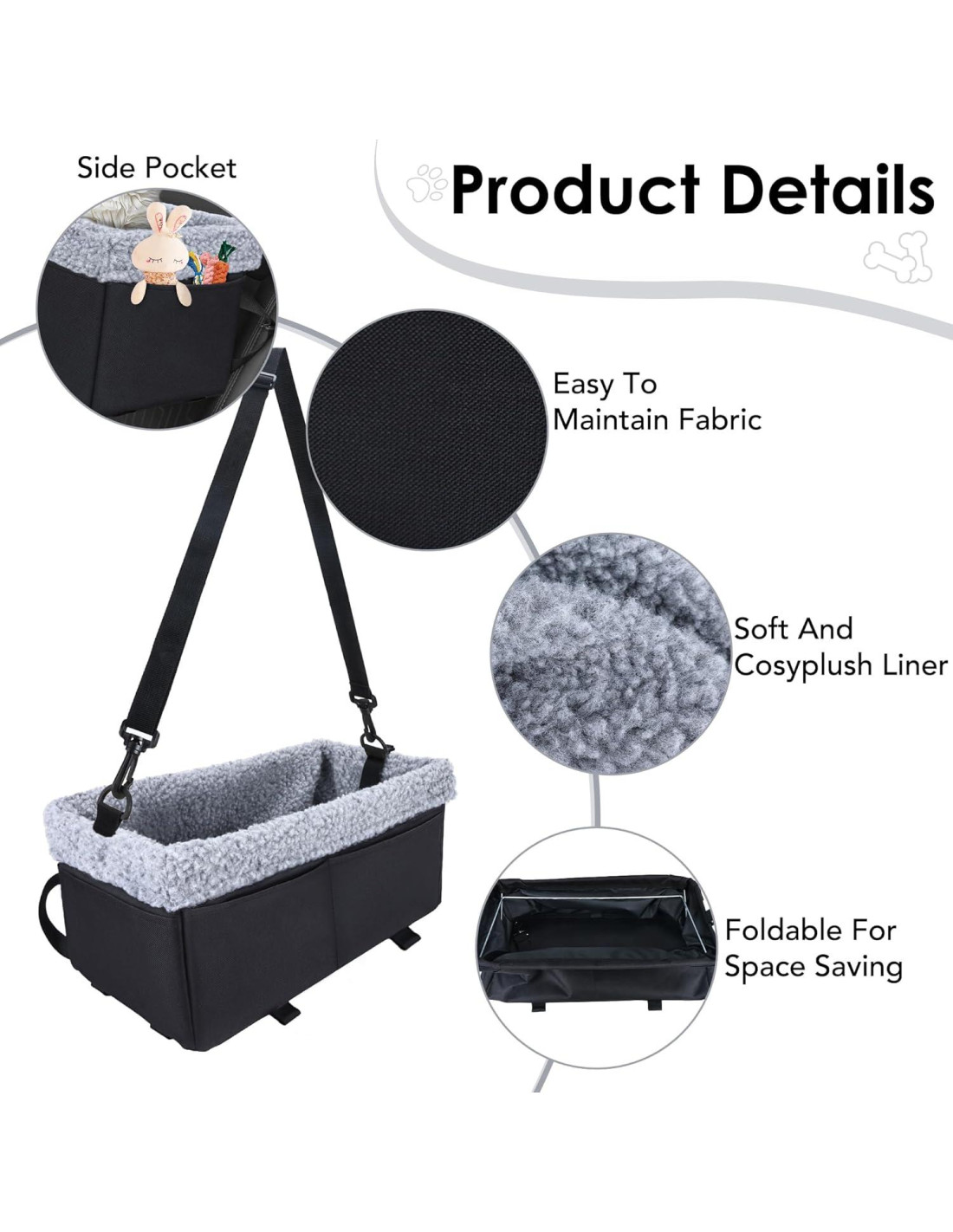 - Fácil de Limpiar y Mantener: Nuestro asiento de coche para perros pequeños cuenta con tapicería de lana de cordero removible para una limpieza fácil y sin esfuerzo, asegurando un ambiente fresco y agradable para tu mascota en cada viaje. El asiento de coche para perros pequeños tiene bolsillos laterales de gran capacidad en tres lados para almacenar algunos suministros para mascotas.