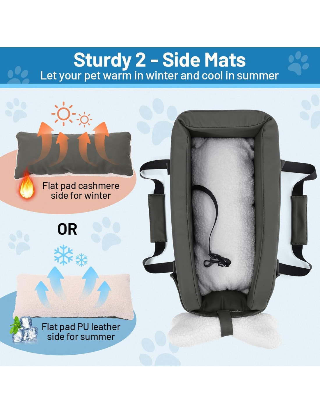 - Comodidad de Soporte Robusto: Hecho de cuero PU, resistente y duradero para una larga vida. Este asiento de coche para cachorros previene que la bolsa colapse y proporciona un espacio de descanso estable para tu amigo peludo. Los cojines lavables de doble cara proporcionan comodidad y pueden usarse en diferentes estaciones. Mantiene a tu mascota cómoda y al alcance, asegurando una experiencia de viaje segura.
