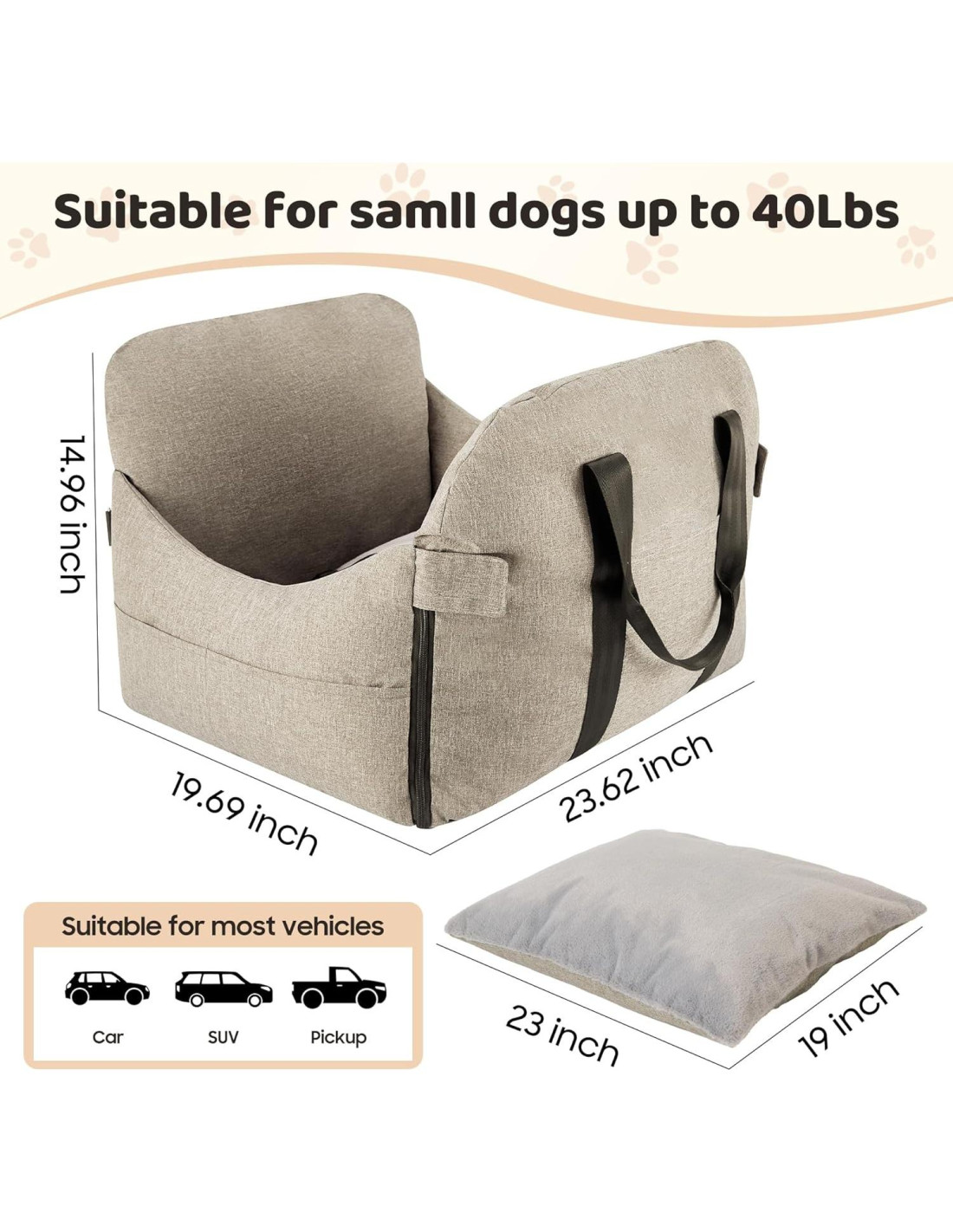 - [Seguridad Primero] Proporciona máxima protección y comodidad en el asiento delantero o trasero con este Asiento Elevador para Mascotas. El asiento de coche para perros pequeños se puede fijar con el cinturón de seguridad del coche para mayor seguridad. Mientras tanto, proporciona un clip de seguridad para asegurar el collar del perro y evitar que la mascota salte o se mueva.