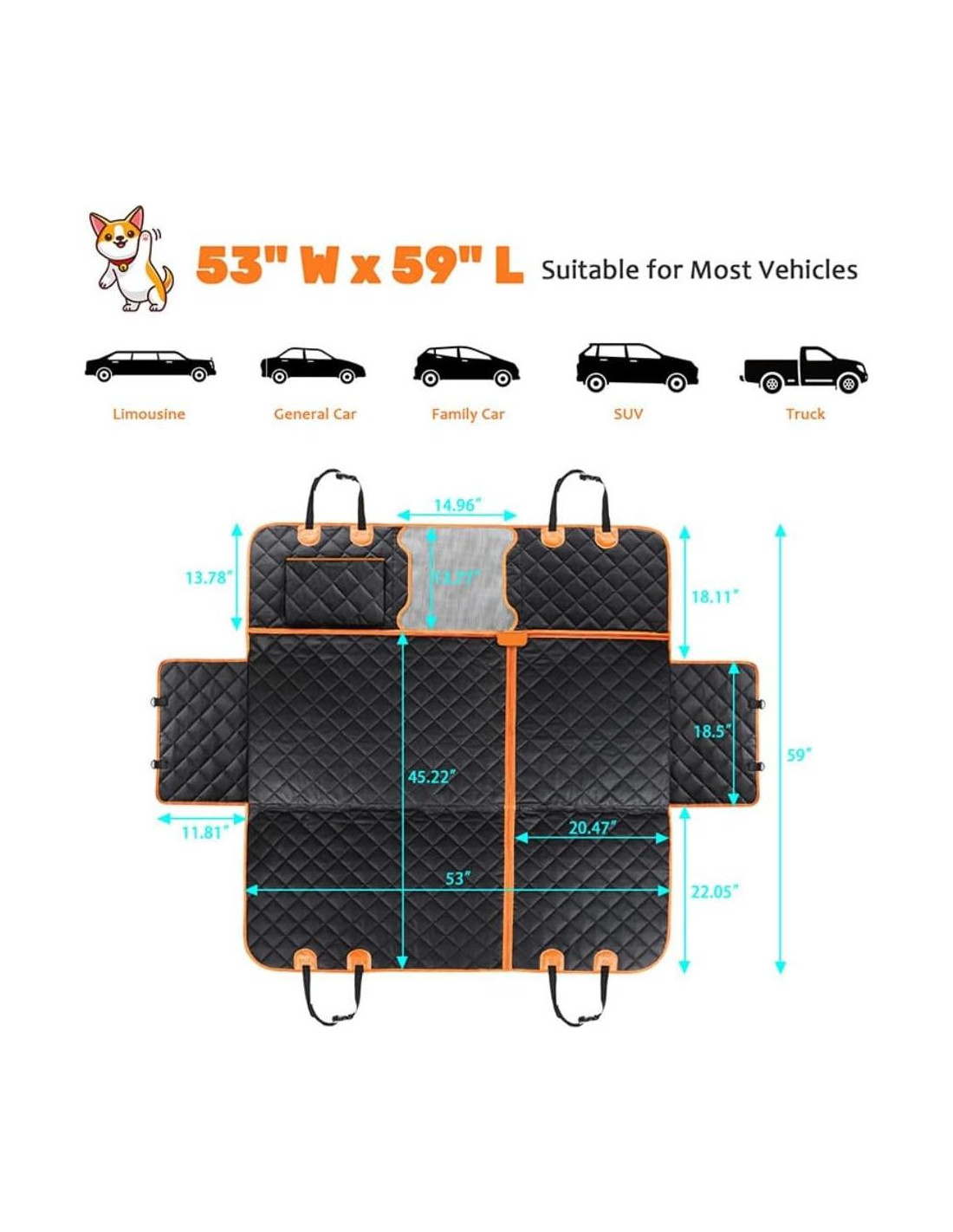 - FUNDA DE ASIENTO PARA PERROS IMPERMEABLE Y RESISTENTE A RASGUÑOS: Hecha de material Oxford 600D, esta funda de asiento trasero para perros es duradera, impermeable y resistente a rasguños. Mantiene totalmente tu asiento libre de suciedad, líquidos, rasguños, pelo y pelaje, etc. No más barridos interminables.
