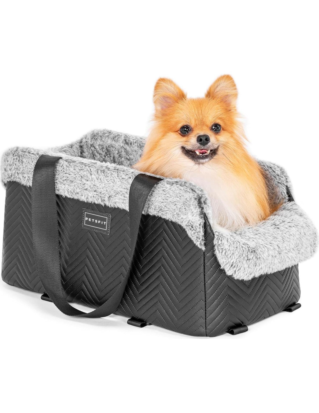 - [Asiento de Coche para Perros en Consola Acogedor] Nuestro asiento de coche para perros asegura la máxima comodidad con bordes de felpa, mientras que el tejido de cuero impermeable ofrece fácil limpieza. Cuenta con un cojín reversible y lavable para flexibilidad estacional y está soportado por robustas hojas huecas para prevenir colapsos.