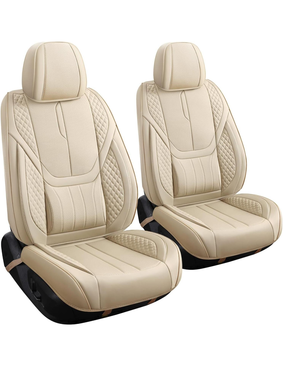 - [Ajuste Universal] Este juego completo de cubiertas de asiento de cuero incluye 2 cubiertas delanteras y 3 traseras, diseñadas para adaptarse a la mayoría de vehículos como sedanes, SUVs, hatchbacks, camiones y pickups. El diseño ajustable asegura una amplia compatibilidad entre diversas marcas y modelos, ofreciendo un ajuste cómodo y protección confiable para tus asientos de coche.