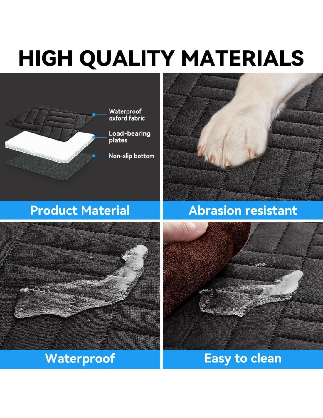 - Prevención de caídas de perros Los coches tienen espacios entre los asientos delanteros y traseros y los perros pueden caer en el asiento trasero. Instalar la funda de asiento trasero para perros previene que los perros caigan.