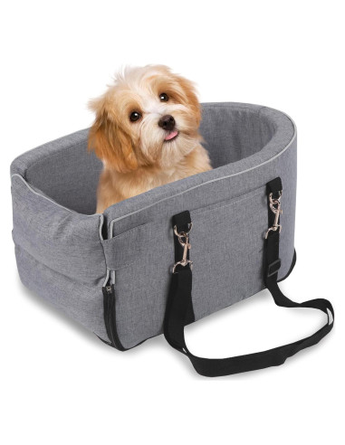 - [Antideslizante Firme] Esta nueva versión del paquete de consola central tiene dos correas en los lados izquierdo y derecho que se pueden conectar a los reposacabezas del conductor y del pasajero. El asiento de coche para cachorros evita que la bolsa se deslice mientras el coche está en movimiento, asegurando la seguridad de tu perro. Las correas tienen ganchos de metal en los extremos que permiten una separación rápida, también se pueden usar como correas de hombro, o cuando las correas no están en uso, se pueden guardar ordenadamente en los bolsillos convenientemente ubicados a cada lado.