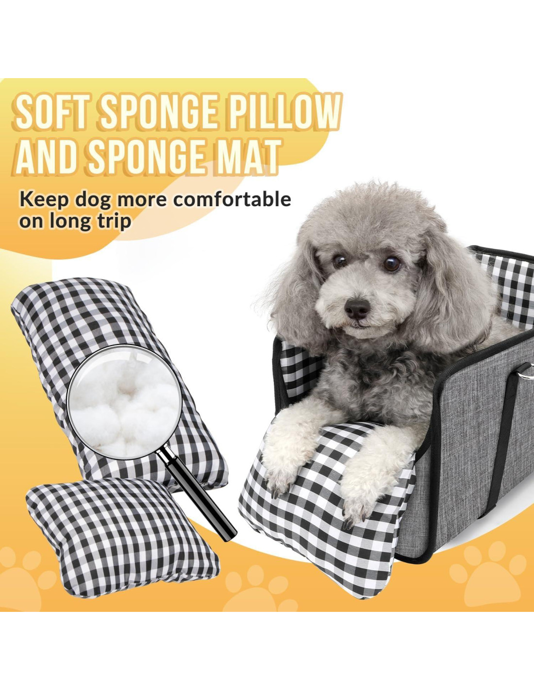 - El asiento de coche para perros pequeños tiene tableros de soporte de plástico resistentes, asegurando la seguridad de tu perro al prevenir colapsos o deslizamientos. Incluye dos almohadillas de esponja para mayor comodidad: una en la parte inferior y otra como almohada frontal. El tablero inferior removible mantiene una base plana