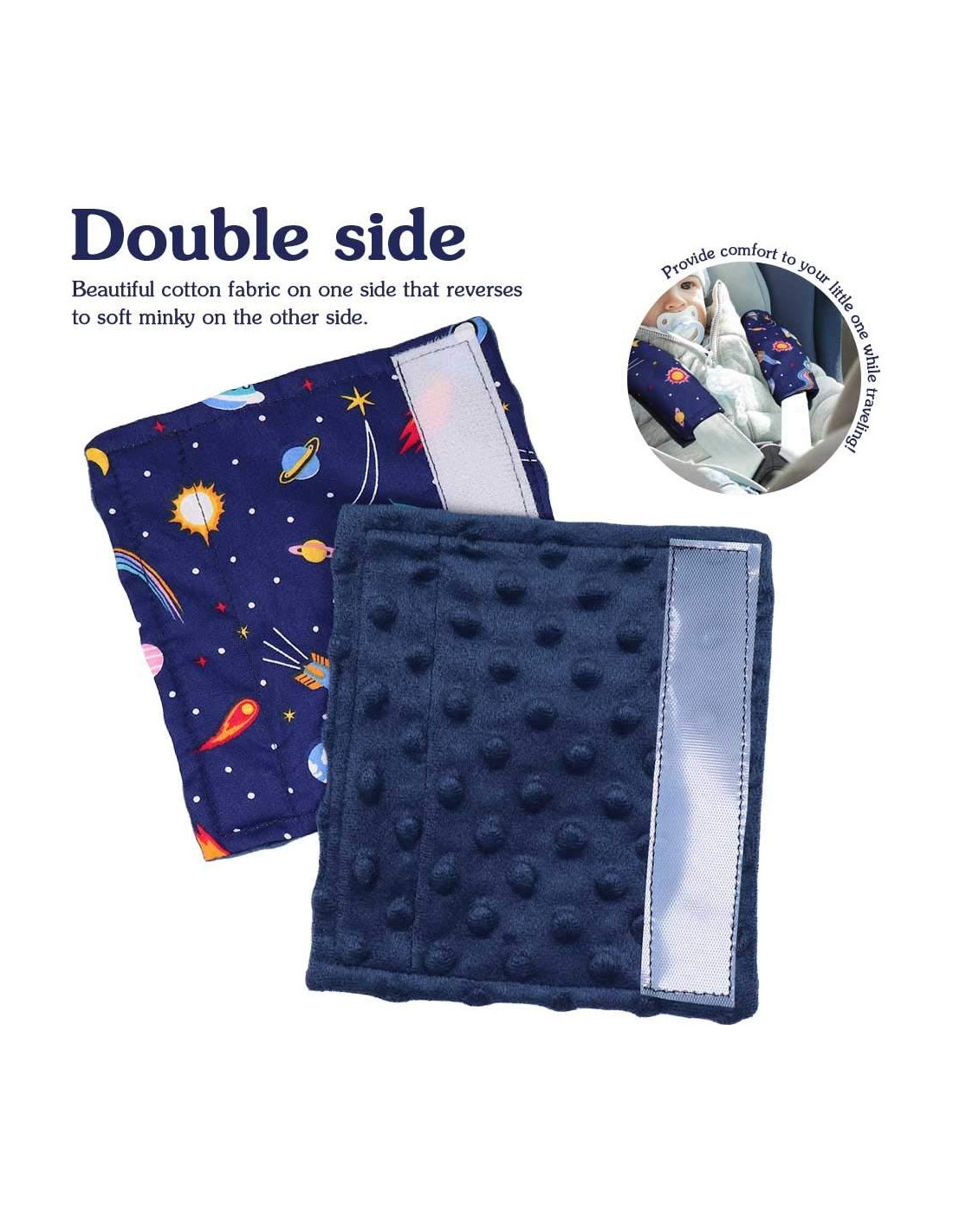 - Amplia gama de usos: El protector de correa de hombro reversible es muy adecuado para todas las sillas de paseo, sillas de auto, fulares para bebés y cinturones de vehículos todoterreno.