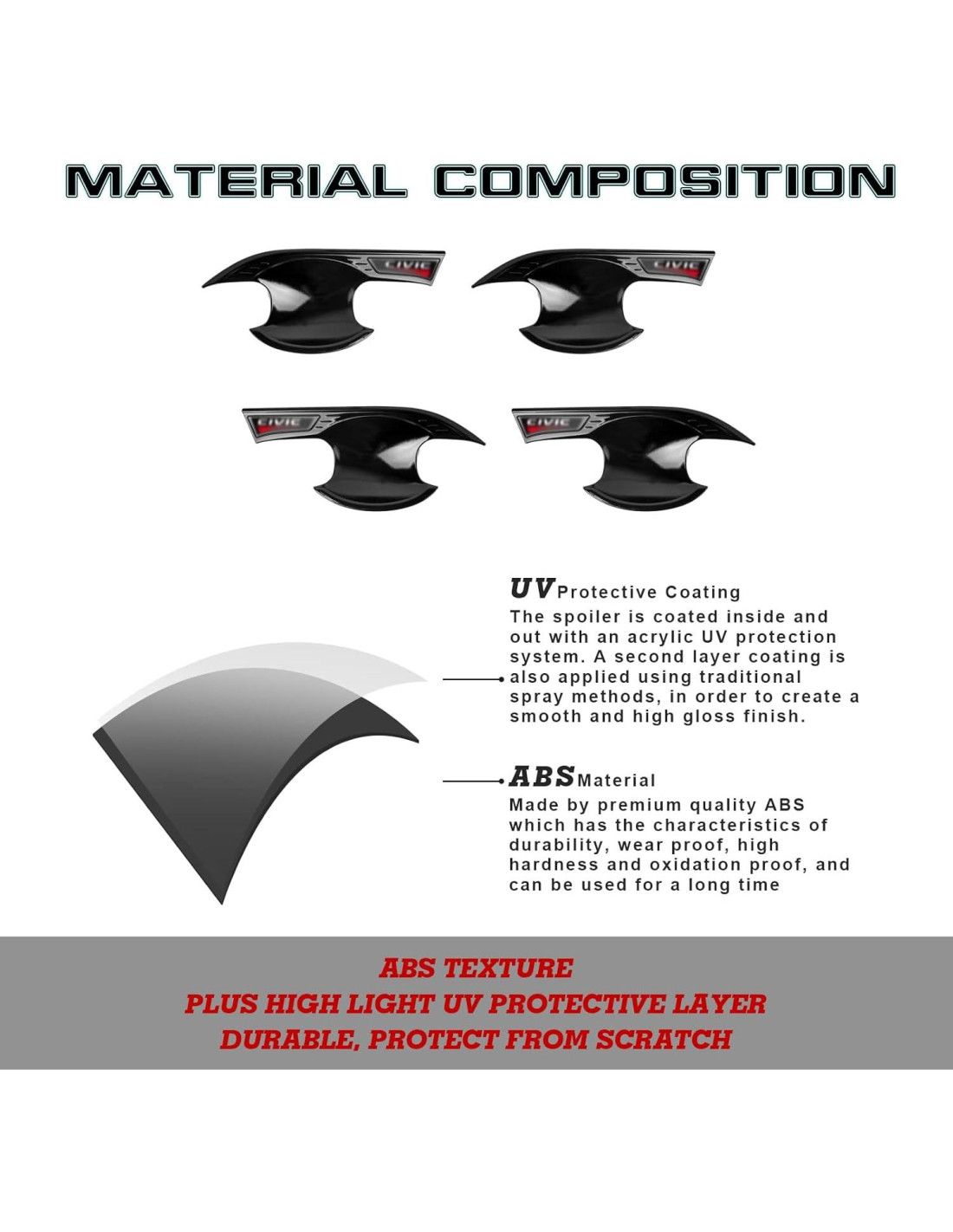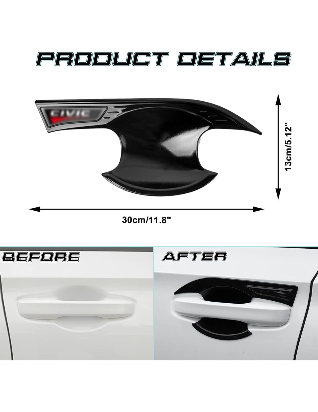 - 4 piezas de cubierta de tazón de manija de puerta de calidad premium en ABS especialmente compatible con Honda Civic 11 Generación 2022+