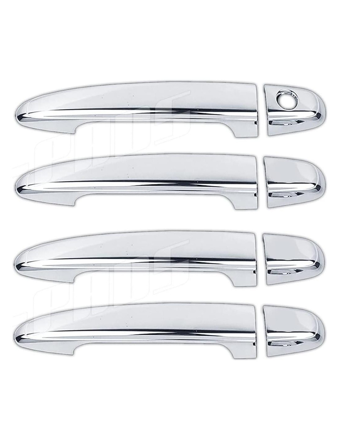 Descripción: 4 Cubiertas de Manijas de Puerta Cromadas, SIN Llave de Pasajero y SIN Llaves Inteligentes. Compatible con(Just overlay Stick on, NOT for SNAP IN Replacement)-TOYOTA- 4Runner 2005-2008 Avalon 2005-2008 Camry 2007-2011 Sienna 2005-2012 Tacoma 2005-2015 Detalles: A-PADS Accesorio de Alta Calidad Triple Cromado. Se ajusta perfectamente a las piezas estándar de fábrica, y solo. Viene con cinta 3M de alta resistencia en el interior de las cubiertas para una fácil instalación. Simplemente siga las instrucciones proporcionadas, limpie la superficie del auto, retire la cinta, pegue (como una etiqueta) y mantenga presionado durante un minuto - así de fácil. Su auto se verá increíble con el cromo de A-PADS. El material es plástico ABS de grado automotriz de la más alta calidad. ¡Aviso Importante! La lista es solo para cubiertas; estas no son piezas de reemplazo. Estas cubiertas deben instalarse sobre piezas estándar de fábrica completas.