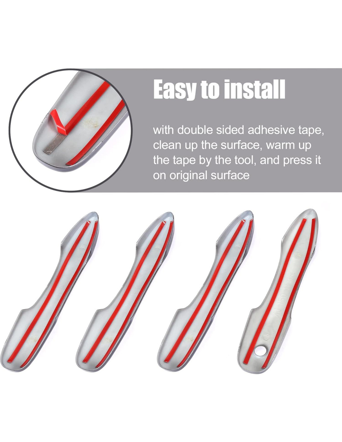 - Fácil instalación: Reemplazo Directo. Por favor, limpie la suciedad y el polvo y asegúrese de que la manija de la puerta esté limpia y seca. Pegue la cubierta en la superficie de la puerta. Presione la cubierta durante aproximadamente un minuto para que la cubierta se adhiera a la superficie.