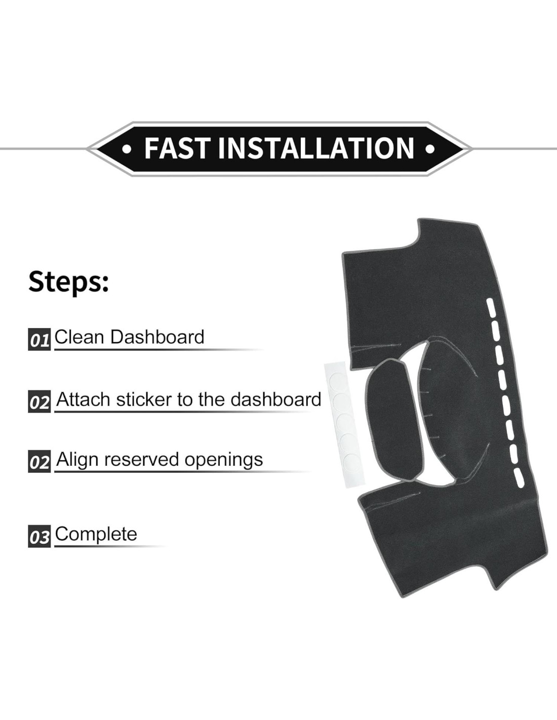 La cubierta protectora del tablero del automóvil solo tarda 3 minutos en instalarse. Alinee con las aberturas reservadas para salidas de aire acondicionado, altavoces, etc. e instálela directamente.