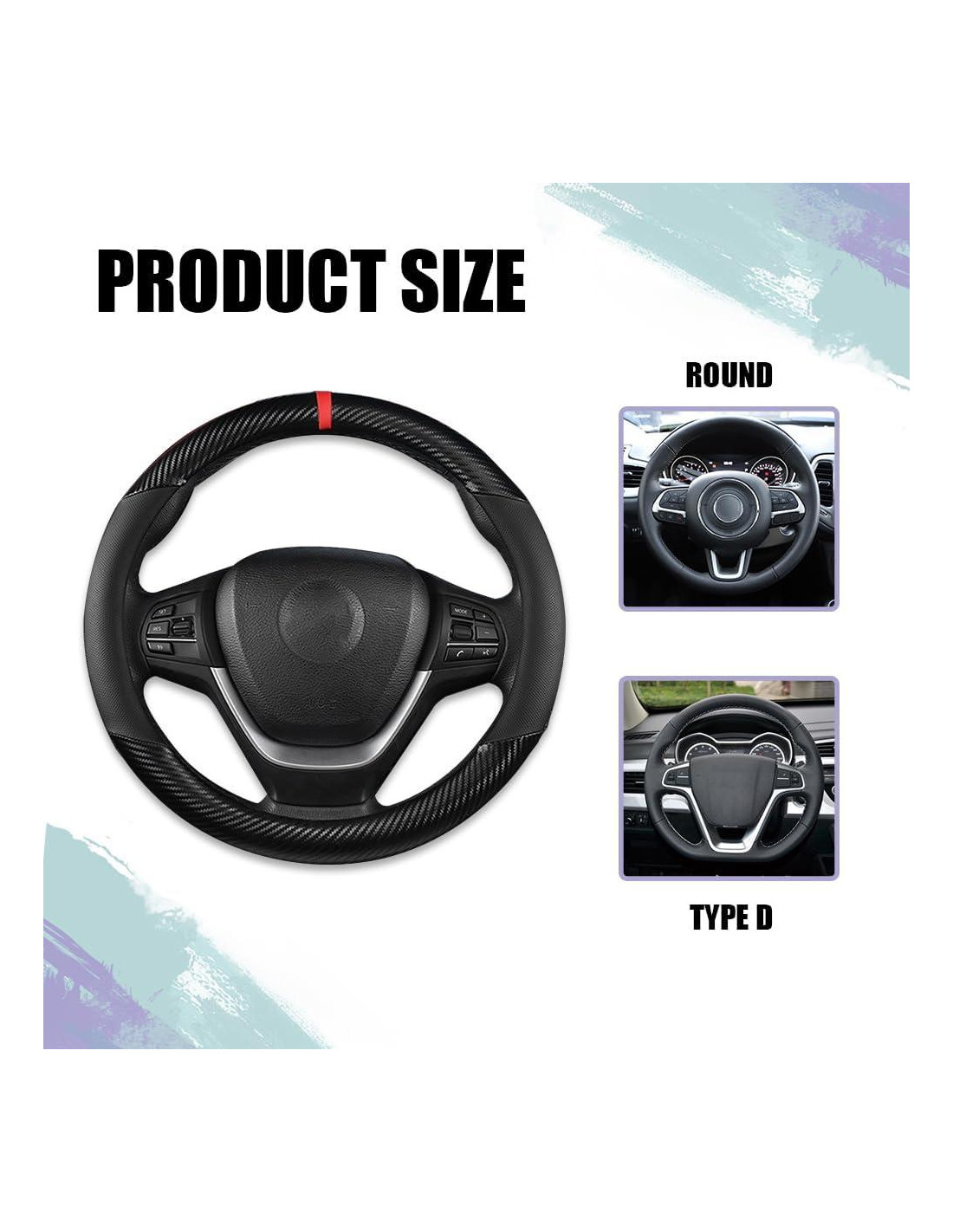 - [Ajuste universal]: Es un accesorio de coche universal que se adapta a volantes tipo O de 14.5 a 15 pulgadas (37cm a 38cm). Por favor, verifique el tamaño antes de comprar para evitar una compra incorrecta.