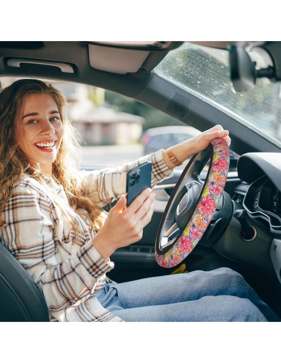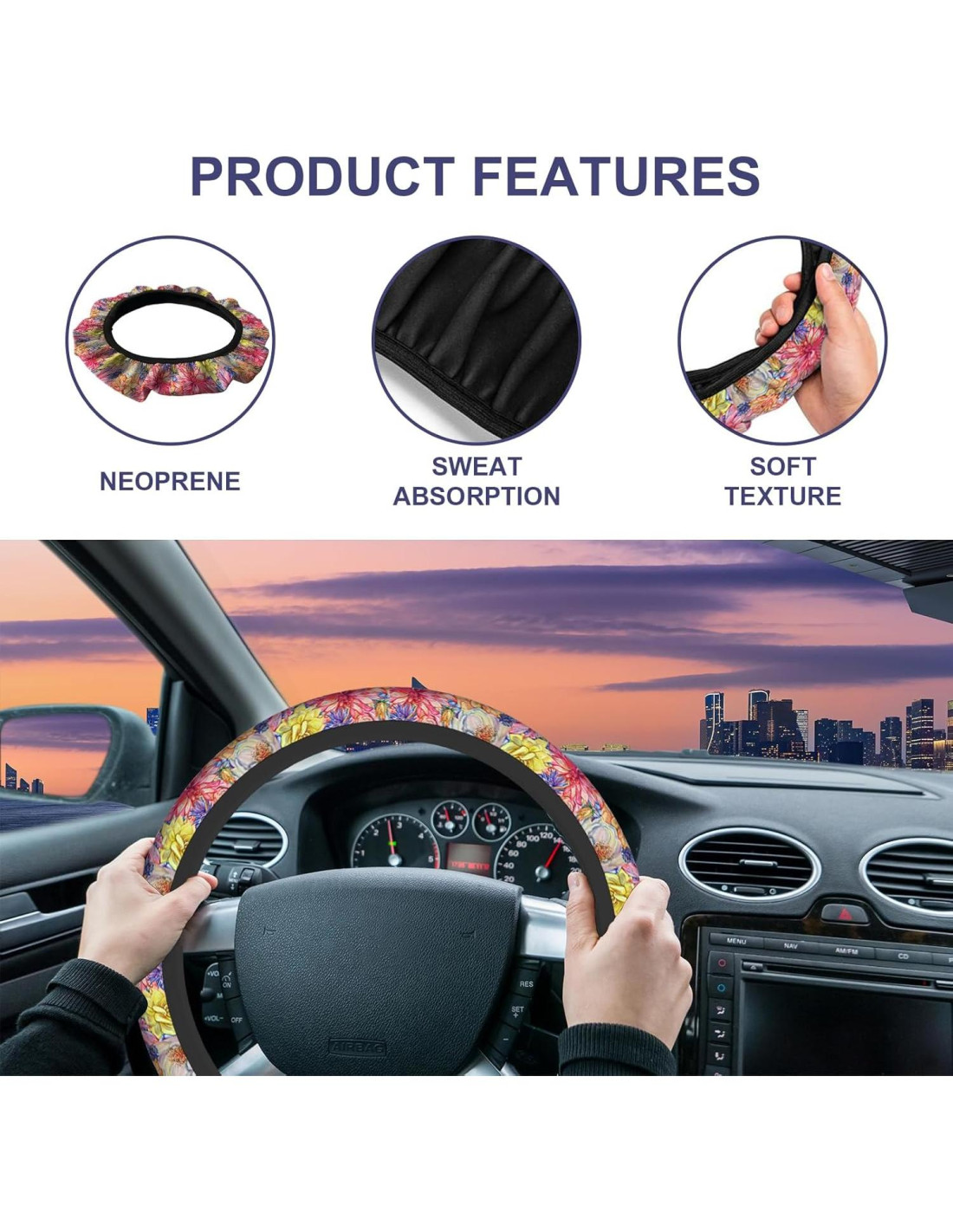 - 3 Diseño: La colorida y exquisita cubierta de volante impresa proporciona al conductor una oportunidad para un espacio de conducción personalizado, añadiendo un toque de moda al interior del coche