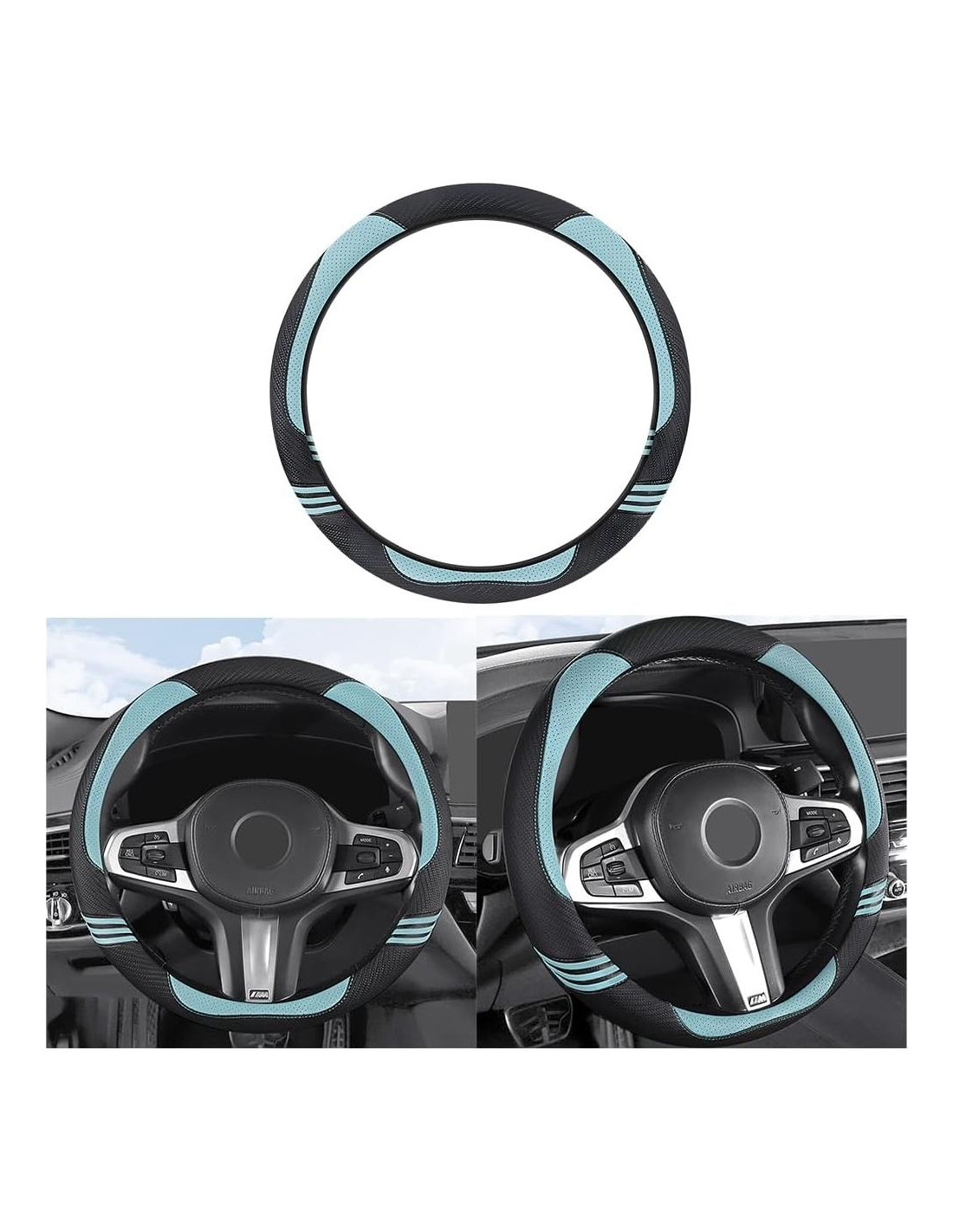 - Material de Calidad: Esta cubierta de volante de coche está hecha de cuero perforado y material de fibra de carbono. El material de cuero perforado fino es suave y delicado al tacto y se siente genial, haciendo que el conductor se sienta cómodo en la conducción diaria. El material de fibra de carbono tiene buena alta resistencia y es ligero, delgado y transpirable, hermoso y práctico, usar esta cubierta de volante de coche puede brindarte una nueva experiencia de conducción.